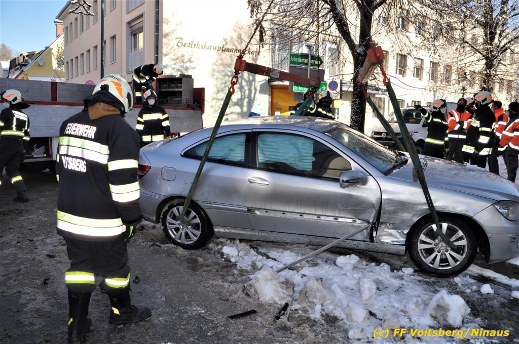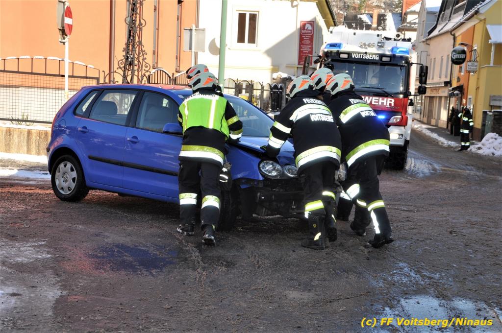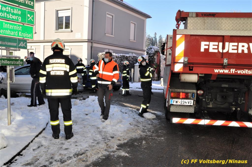 VOITSBERG, am 11.01.2021 Die FF Voitsberg wurde am Montag, 11.Jänner 2021 um 11:24 Uhr zu einem Verkehrsunfall zur Kreuzung Bahnhofstraße-Schillerstraße Nähe der BH Voitsberg alarmiert.