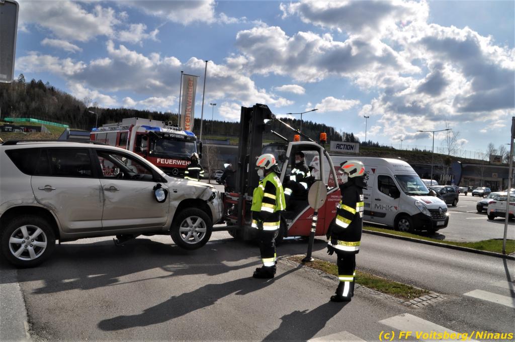 Der Lenker konnte sich aus eigener Kraft nicht befreien und wurde nach Stabilisierung des Fahrzeuges in Zusammenarbeit zwischen der FF Voitsberg und dem Roten Kreuz Voitsberg-Köflach aus seiner misslichen Situation aus dem Fahrzeug über eine Leiter mit leichten Verletzungen gerettet und in das LKH Voitsberg eingeliefert.