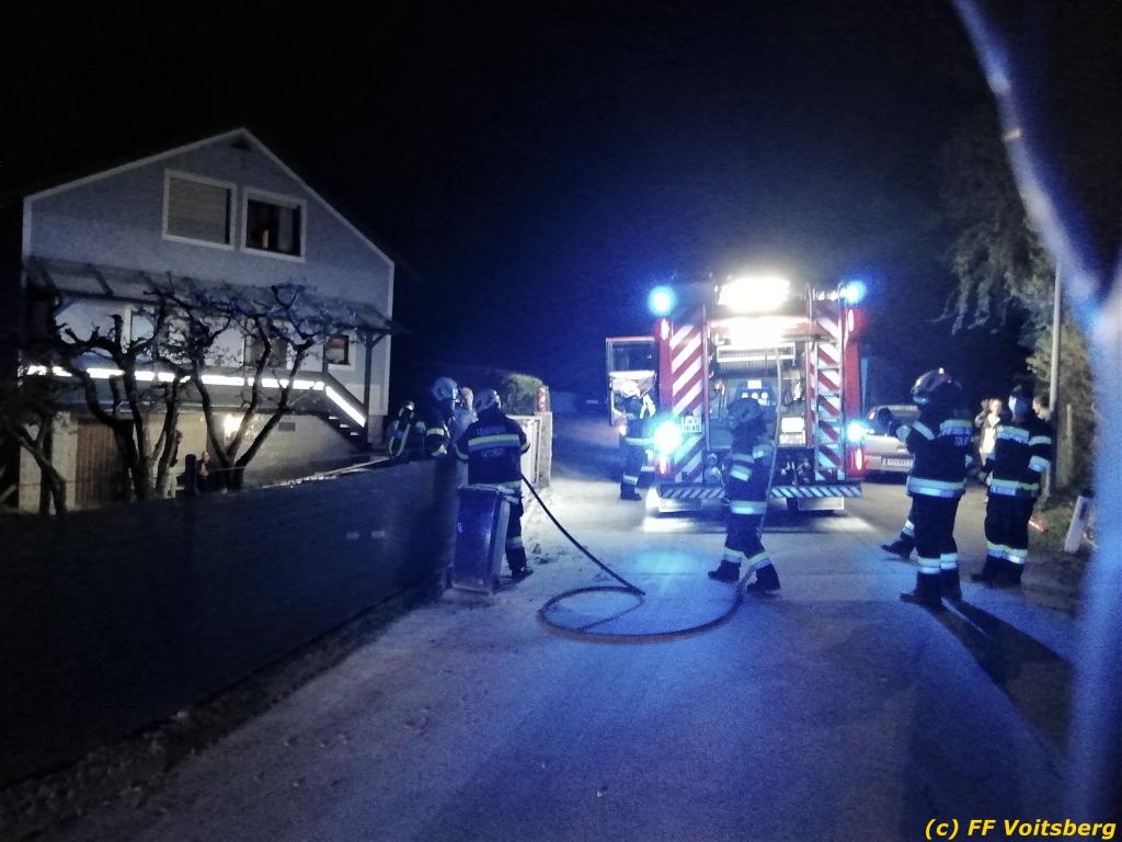 Bei Eintreffen stellte der Einsatzleiter fest, dass der Müllcontainer vom Besitzer und Nachbarn mit Pulverlöschern bereits gelöscht wurde. Die FF Voitsberg führte Nachlöscharbeiten durch. Es entstand geringer Sachschaden.