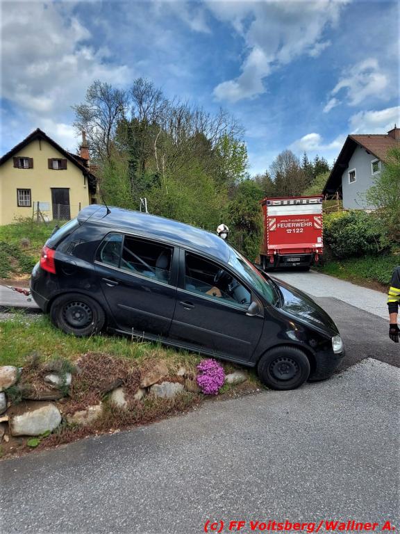 VOITSBERG, am 01.05.2021 Ein Pkw geriet am Samstag, 1. Mai 2021 in den Nachmittagsstunden in der Margarethengasse in Voitsberg aus unbekannten Gründen über eine Böschung und drohte umzustürzen.