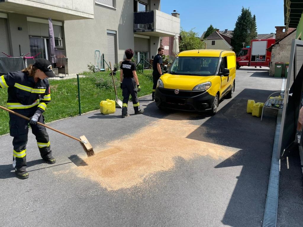 VOITSBERG, am 09.08.2021 Die FF Voitsberg wurde am Montag, 9. August 2021 um 12:45 Uhr in die Barbarastraße in Voitsberg alarmiert, nachdem bei einem Pkw aus technischen Gründen Schmiermittel auf die Fahrbahn gelangten.