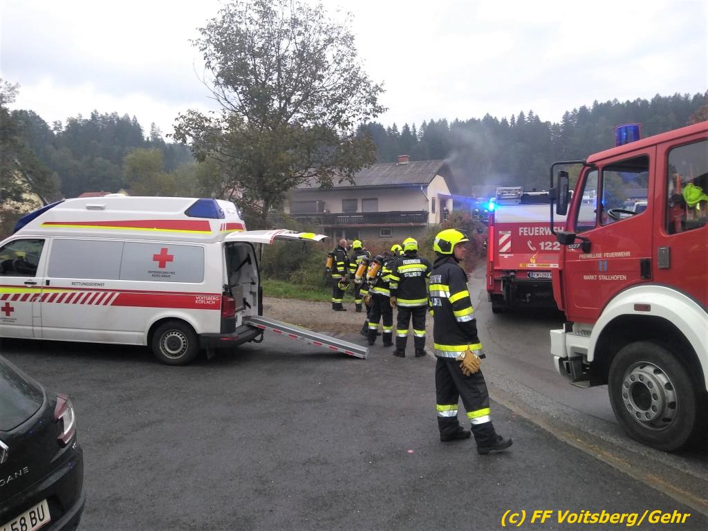 Zimmerbrand - Anforderung der einsatzleitenden FF Krems - Reserve mit Atemschutz am Einsatzort - Einsatz von Drucklüfter