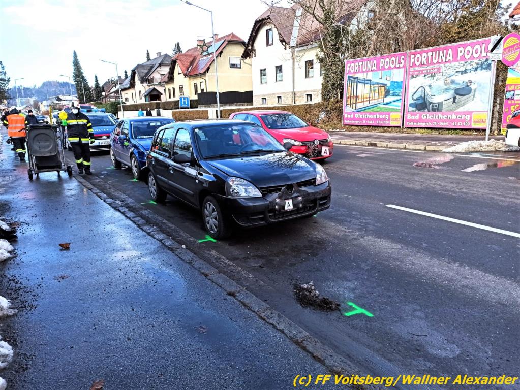 VOITSBERG, am 01.12.2021 Bei einem Auffahrunfall mit insgesamt vier beteiligten Fahrzeugen entstand bei diesen leichter Sachschaden. Alle konnten die Unfallstelle selbständig verlassen. Aufgabe der Feuerwehr war in Zusammenarbeit mit dem Bauhof Voitsberg die Reinigung der Fahrbahn von herumliegenden Wrackteilen. Aufgrund der Umfahrungssperre war ein verstärktes Verkehrsaufkommen zu verzeichnen, sodass die Polizei bei der Verkehrsregelung unterstützt wurde.
