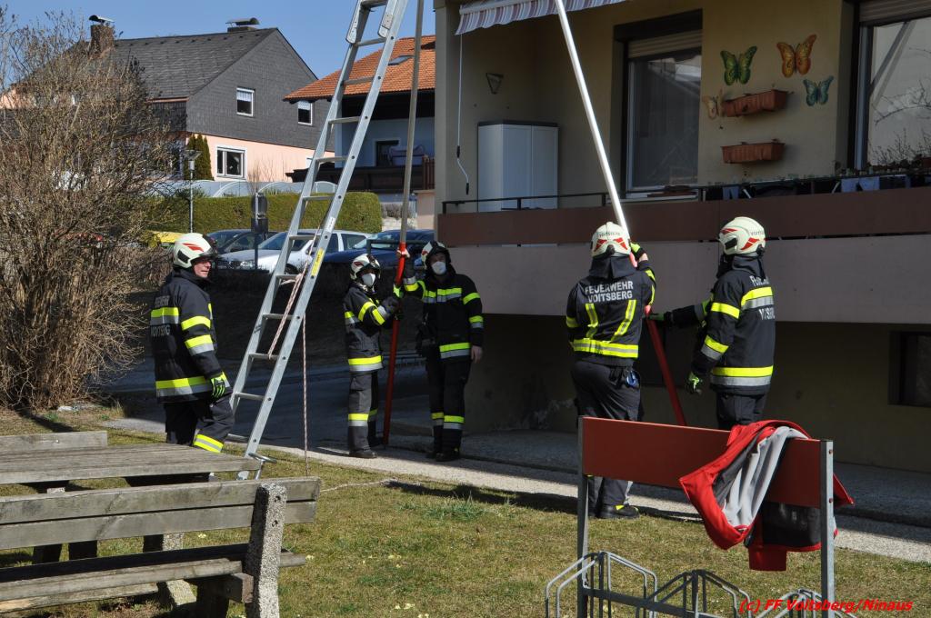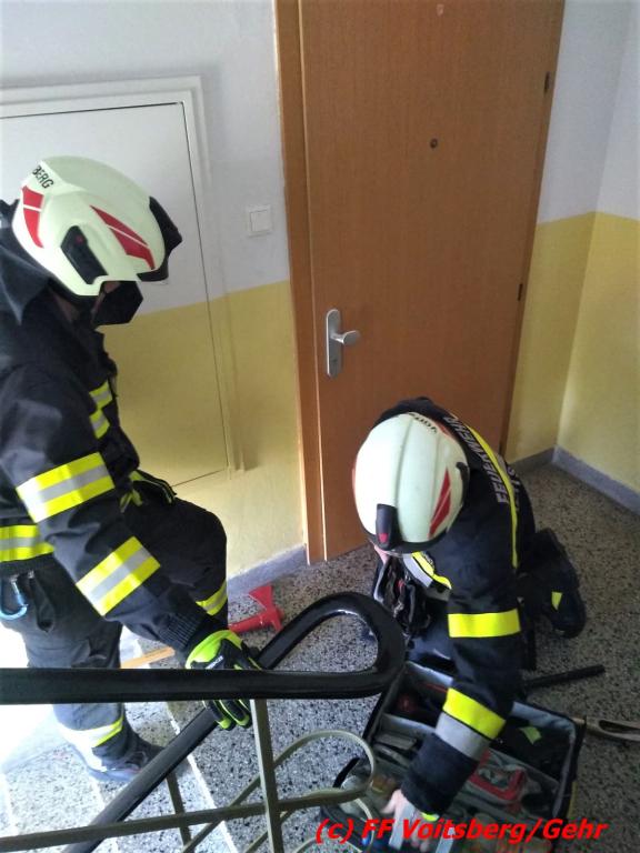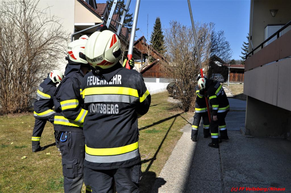 VOITSBERG, am 21.03.2022 Die FF Voitsberg wurde am Montag, 21. März 2022 um 10:19 Uhr seitens der LLZ Steiermark mit Sirenenalarm zu einer Türöffnung in die Franz-Schöpfer-Gasse in Voitsberg alarmiert. Im 4. Obergeschoß eines Mehrparteienhauses versuchten zuvor Verwandte eine in der Wohnung anwesende Frau zu erreichen, was aber nach mehreren Versuchen nicht gelang. Es bestand die Gefahr, die Frau könnte gesundheitliche Probleme haben.