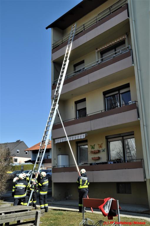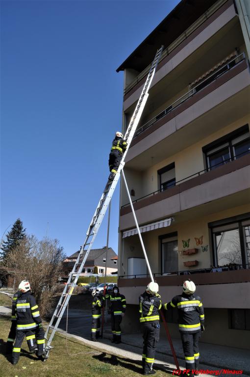 Die Angehörigen verständigten die Feuerwehr, das Rote Kreuz und die Polizei. Nach erfolglosen Versuchen einer schonenden Türöffnung entschied sich der Feuerwehr-Einsatzleiter den Einstieg mit der dreiteiligen Schiebeleiter über den Balkon.