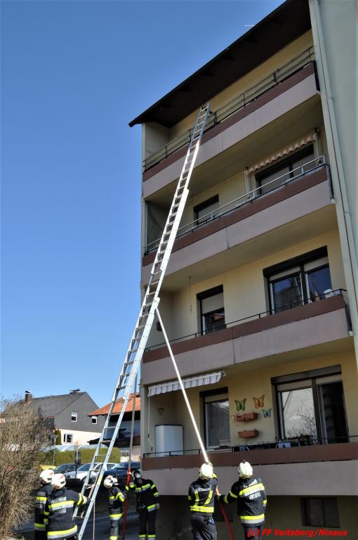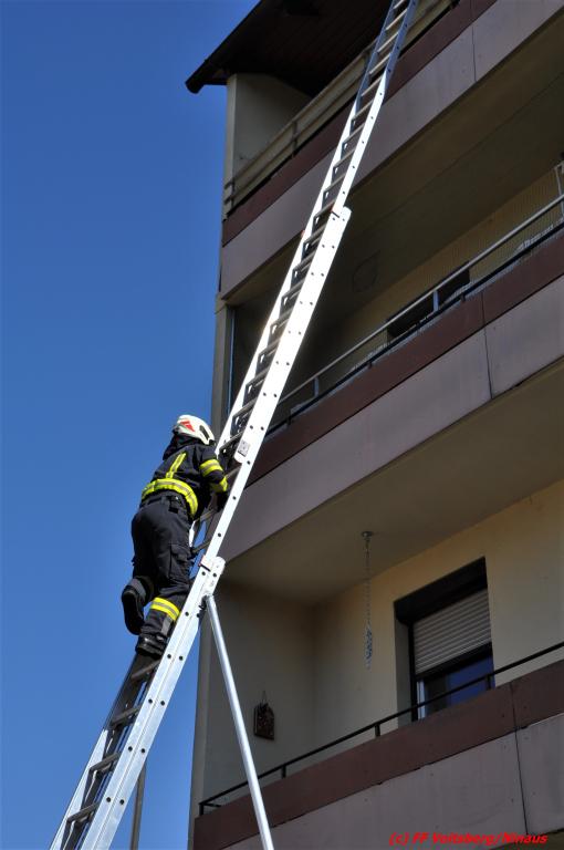 Über den Leiterweg gelangte ein Feuerwehrkamerad auf den Balkon und danach in die Wohnung. Glücklicherweise stellte sich heraus, dass die Frau in der Wohnung unverletzt angetroffen wurde und die Signale der Verwandten nicht hörte.