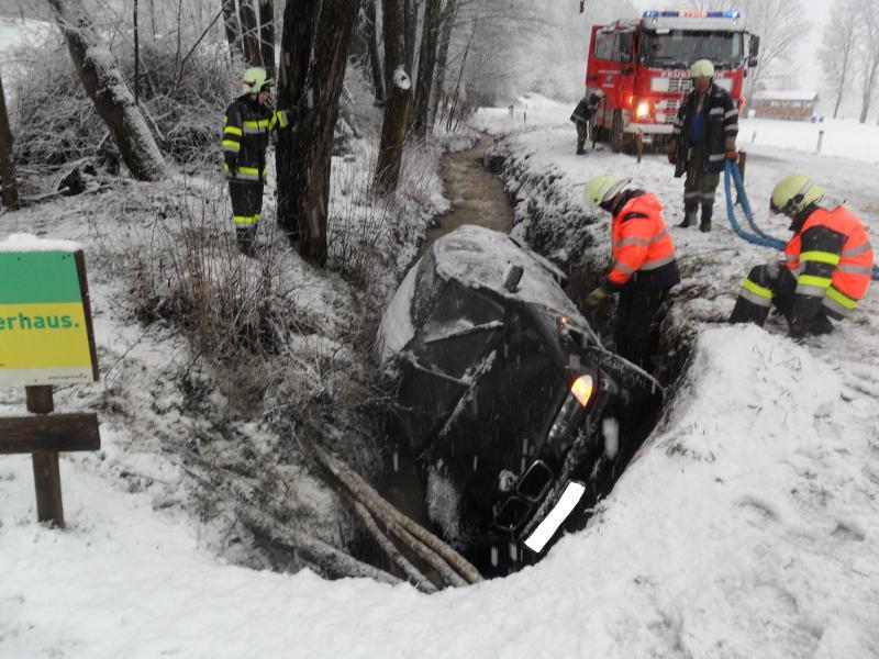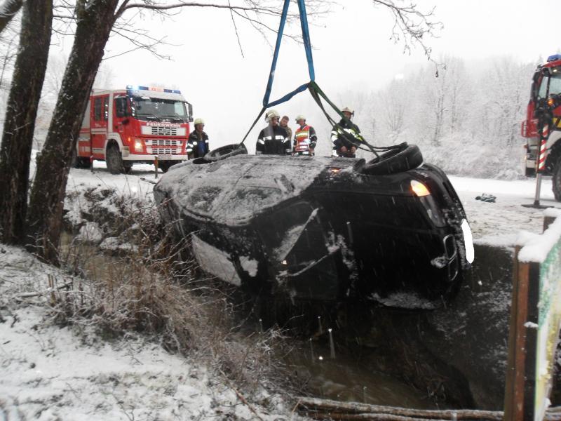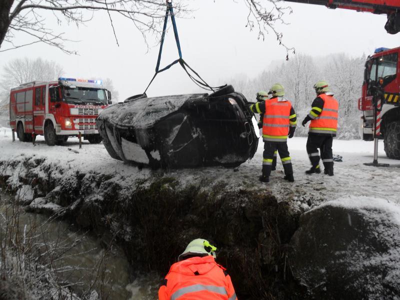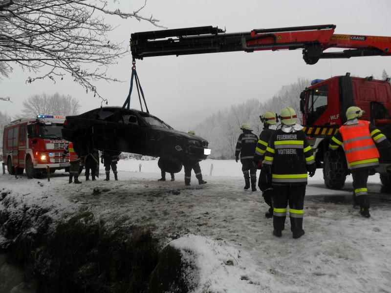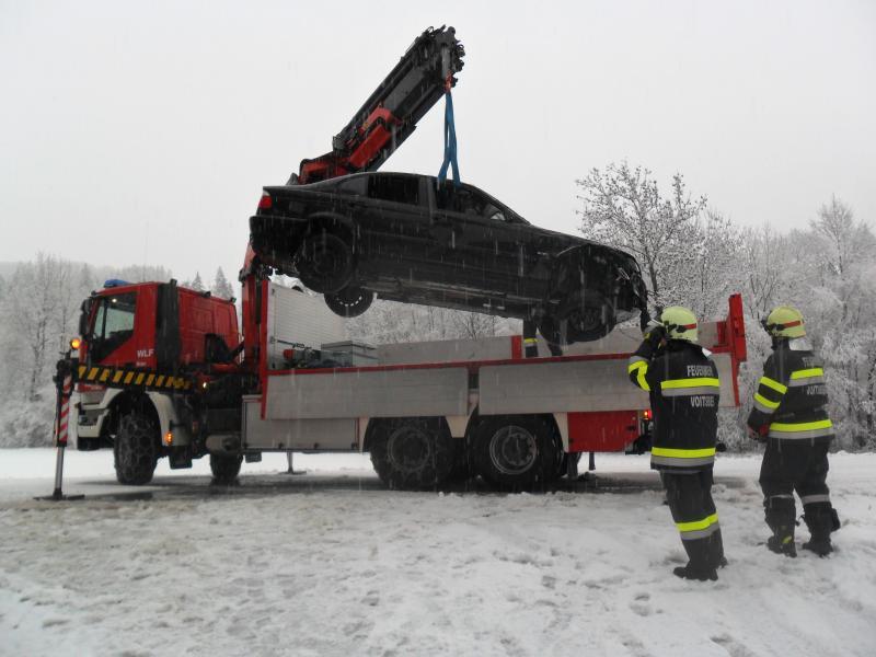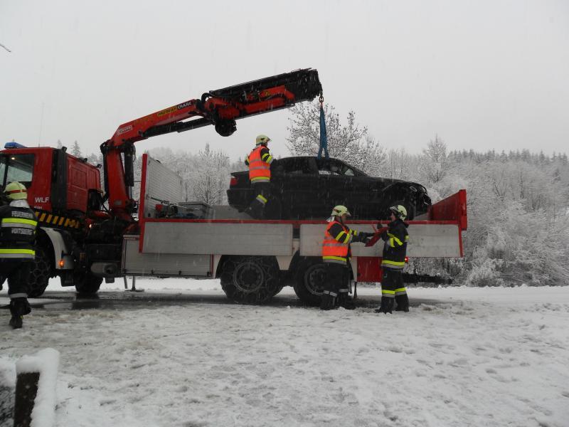 Über Anforderung der FF Södingberg rückte WLF-Kran zu einer Fahrzeugbergung nach Södingberg aus