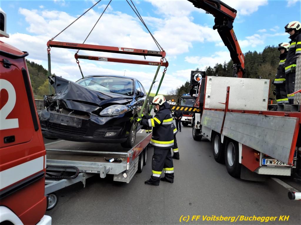 Nach der Unfallaufnahme durch die Polizei konnten die Feuerwehren die Straße reinigen, das leicht beschädigte Fahrzeug konnte die Fahrt wiederaufnehmen, die beiden anderen Fahrzeuge wurden jeweils vom WLF Voitsberg (Austritt von Schmierstoffen) und des ÖAMTC abtransportiert.