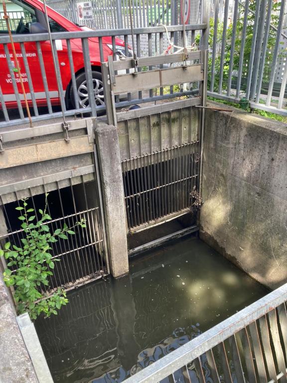 VOITSBERG, am 08.06.2022 Aufmerksame Spaziergänger entdeckten am Mittwoch, 8. Juni in den Nachmittagsstunden auf dem Weg zum Schlosspark in Voitsberg eine vor dem Rechengitter befindliche, aufgeregte Entenmutter, welche um ihre Entenküken, welche wahrscheinlich beim letzten starken Regen durch den ansteigenden Schlossbach hinter das Gitter gerieten und abzustürzen drohten.