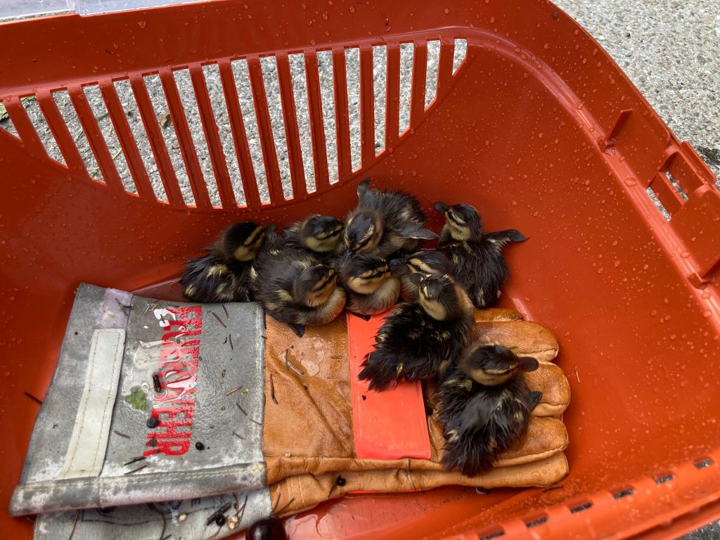Kameraden der FF Voitsberg begaben sich nach der Erkundung hinter das Gitter und retteten 10 Entenküken, verbrachten diese in eine Box und setzten diese im Schlosspark Voitsberg wieder aus und konnten somit die Mutter mit ihren Kindern wieder vereinen.