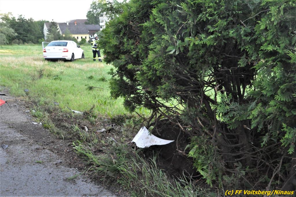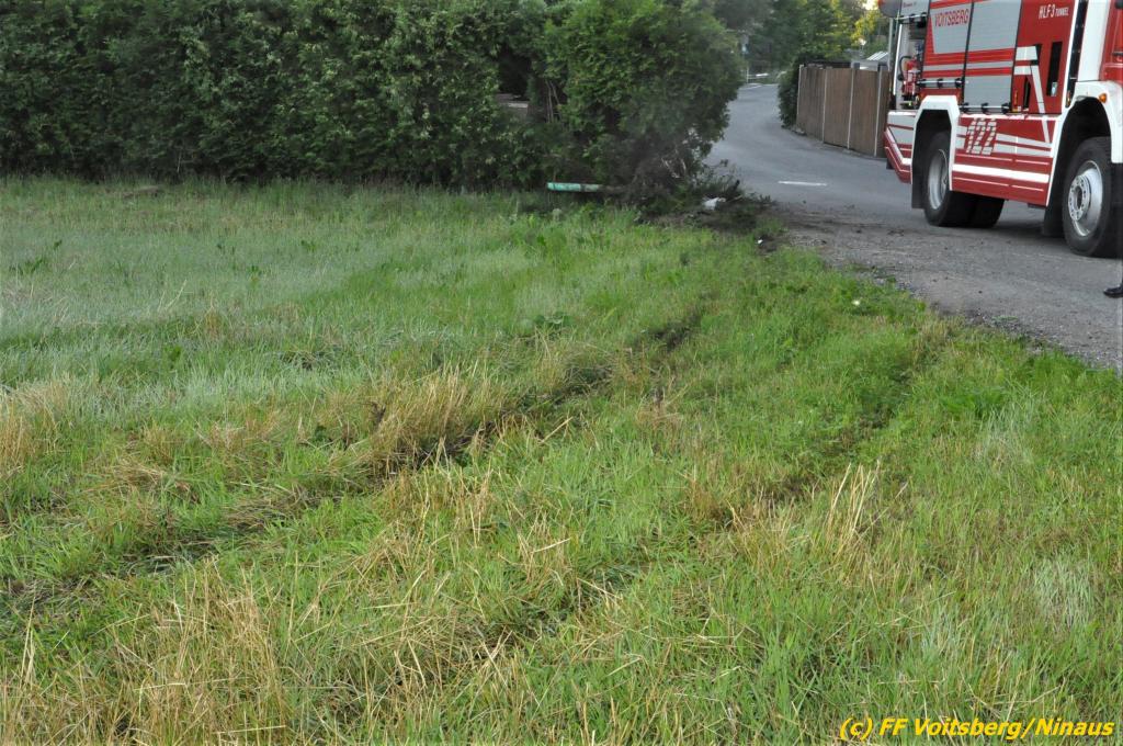 Aus unbekannten Gründen kam ein Pkw-Lenker mit seinem Fahrzeug von der Straße ab, streifte einen Thujenzaun und stieß gegen eine Straßenlaterne, welche durch die Wucht des Aufpralls ausgerissen wurde, sich unter dem Pkw verkeilte und ca. 30 m mitgeschleift wurde. Das Fahrzeug kam auf einer Wiese zu stehen, der Lenker blieb unverletzt.