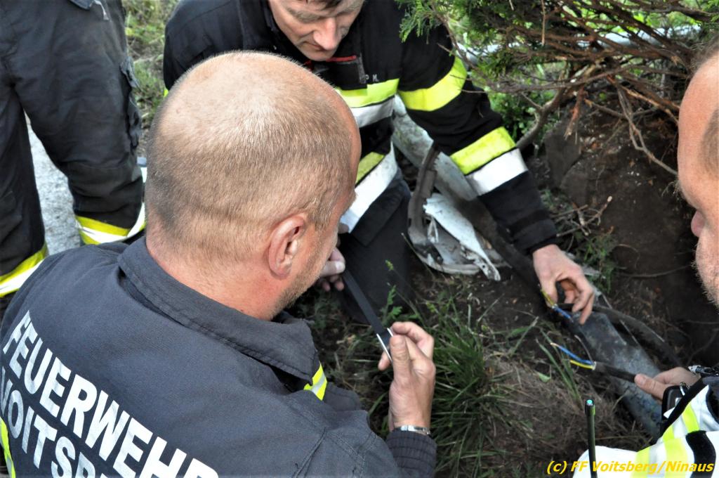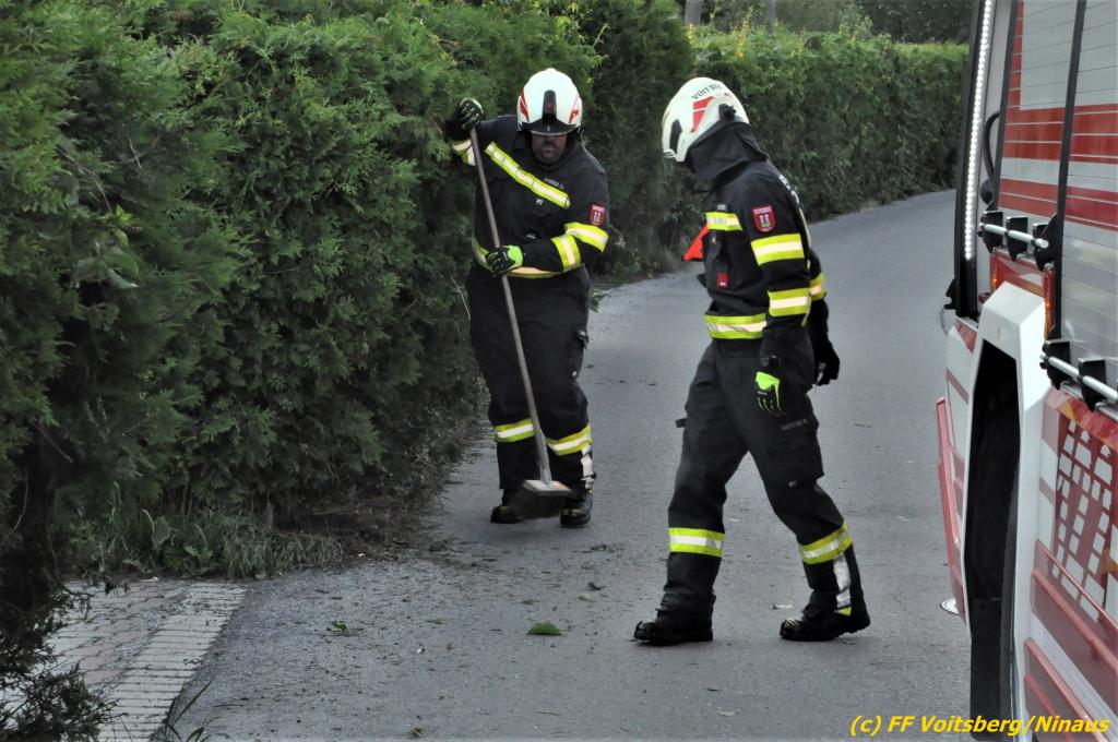 Die FF Voitsberg sicherte die Unfallstelle ab, baute einen Brandschutz auf, kontrollierte ob Flüssigkeiten ausliefen (negativ), entfernte von der Fahrbahn herumliegende Wrackteile und säuberte die Straße.