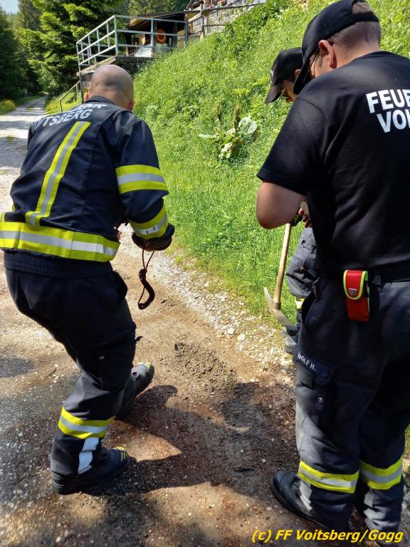 Eingesetzt waren insgesamt 16 Einsatzkräfte der Feuerwehren Graden und Voitsberg, die Polizei und ein Baggerunternehmen.