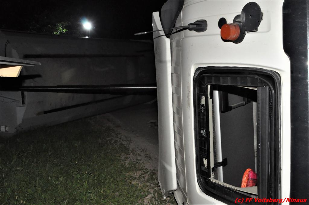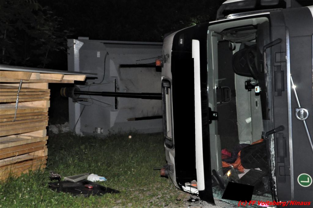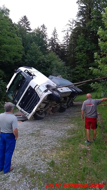 Die Feuerwehren Voitsberg und Rosental wurden am Montag, 4. Juli 2022 um 03:17 Uhr zu einem Einsatz mit dem Kennwort „Menschenrettung“ alarmiert. Bei Eintreffen stellte der Einsatzleiter, dass eine Menschenrettung nicht mehr notwendig ist, da der Lenker eines Sattelschleppers bereits von zwei Personen gerettet und dem Roten Kreuz übergeben wurde. Die alarmierte Feuerwehr Rosental konnte daher wieder in das Feuerwehrhaus einrücken.