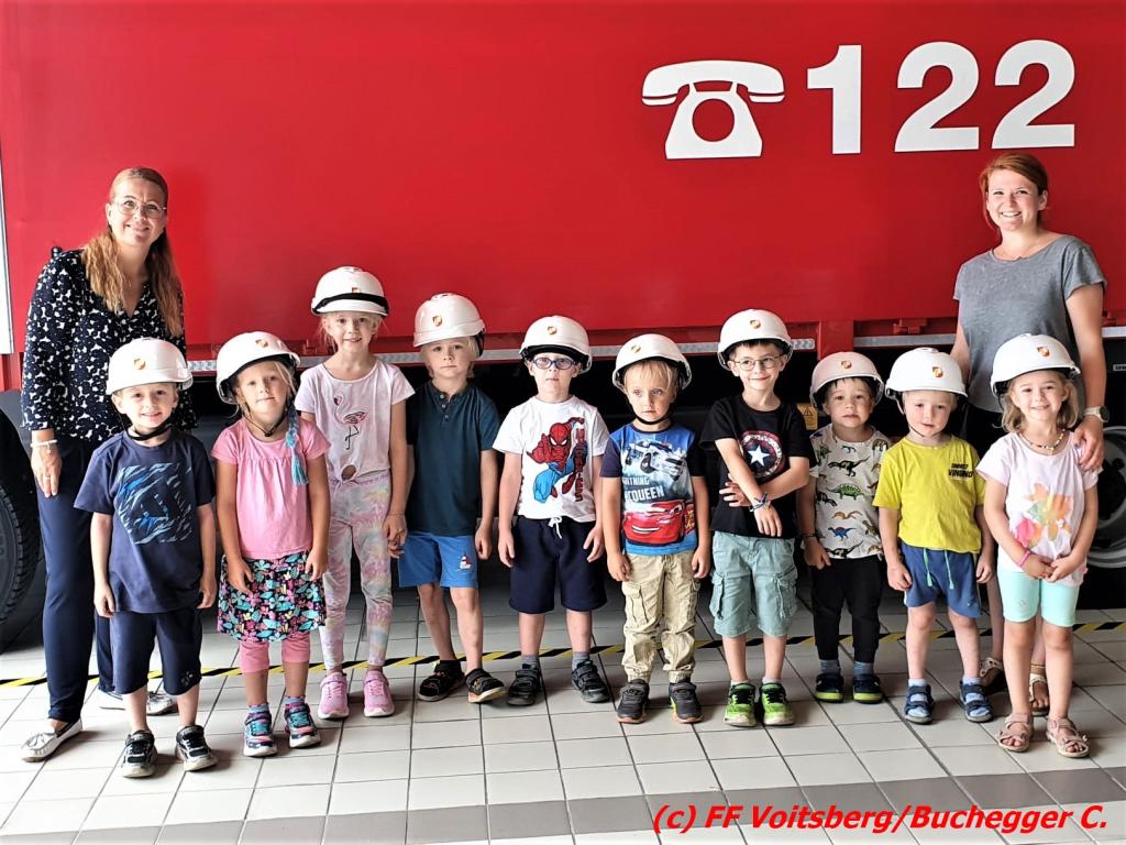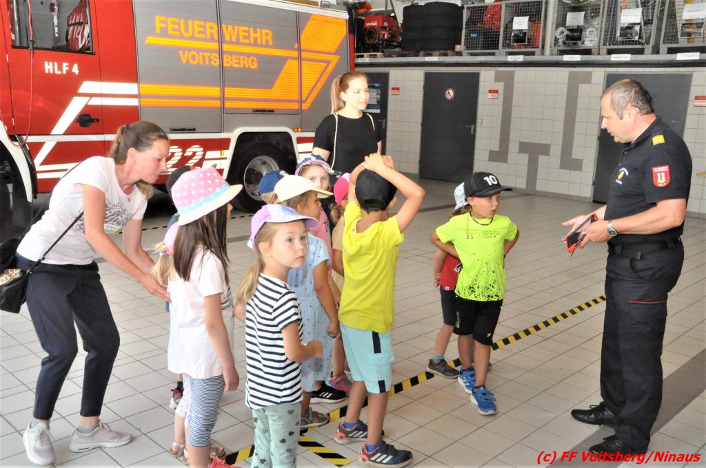 VOITSBERG, am 07.07.2022 Das Feuerwehrhaus der Stadtfeuerwehr Voitsberg hatte am Donnerstag, 7. Juli 2022 am Vormittag Besuch vom Kindergarten Schillerstraße der Volkshilfe.