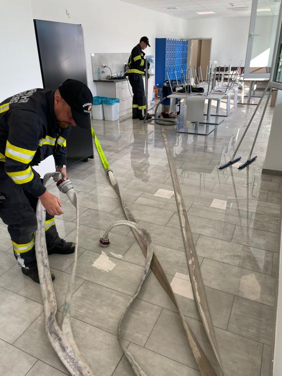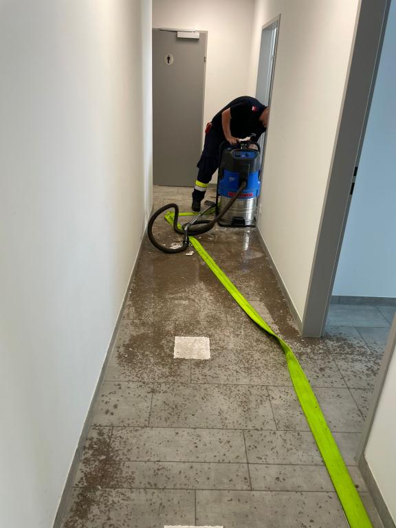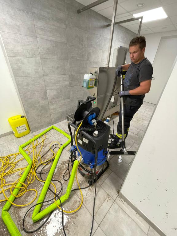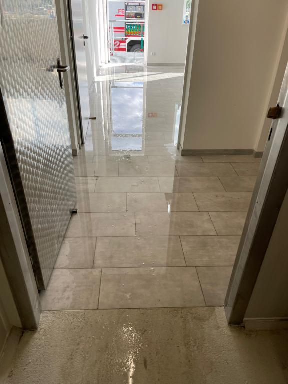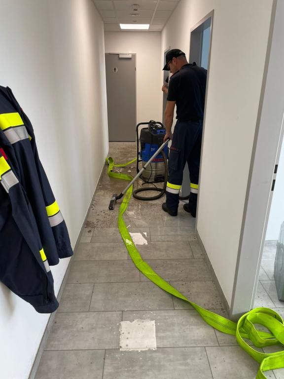 Mit insgesamt fünf Nasssaugern konnte das Wasser nach ca. 2 Stunden abgepumpt werden. Der Schaden ist enorm.