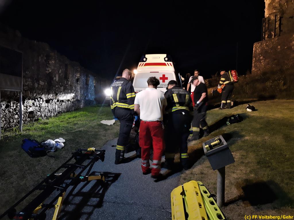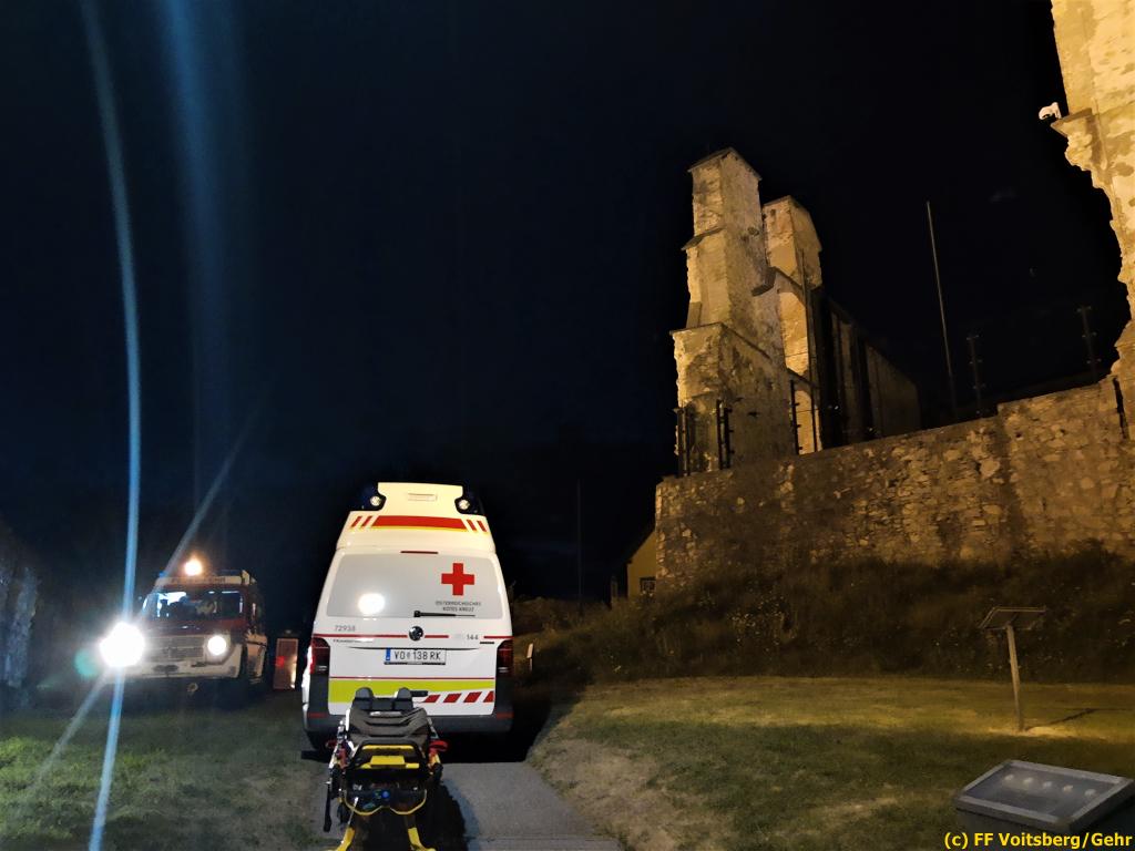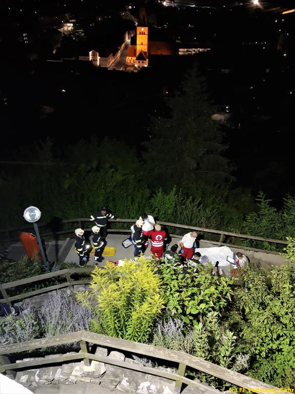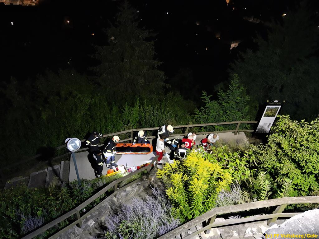 Die FF Voitsberg wurde am Dienstag, 26. Juli 2022 um 21:18 Uhr seitens des Rettungsteams mit Notarzt zum Schlossbergsteig in Voitsberg zwecks Tragehilfe beim Abtransport eines Verunfallten alarmiert. Eine Person stürzte aus unbekannten Gründen von den Stufen des Steiges und landete einige Meter darunter und konnte nicht mehr aufstehen. Er verständigte die Hilfskräfte.