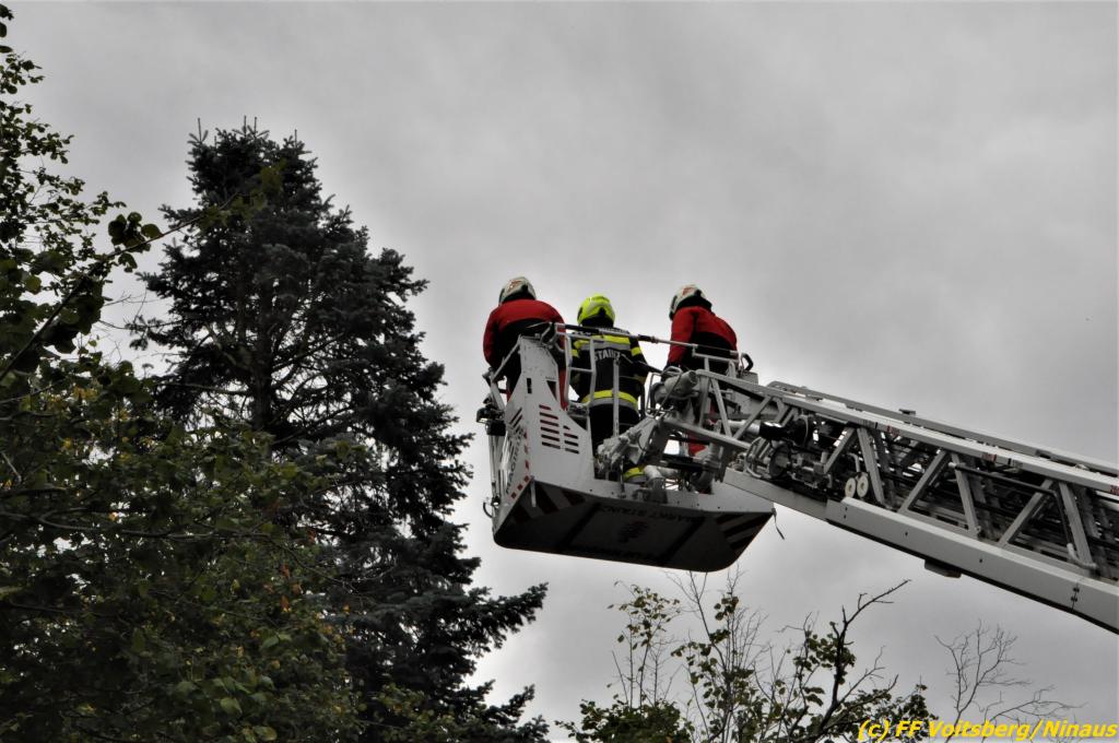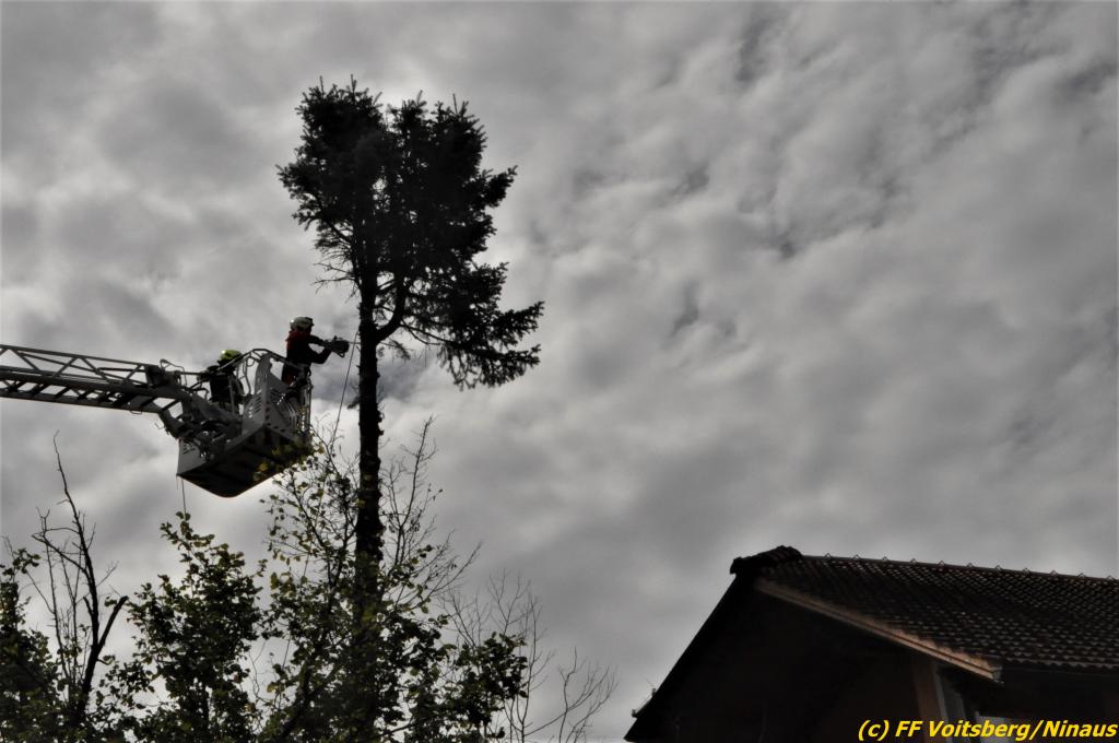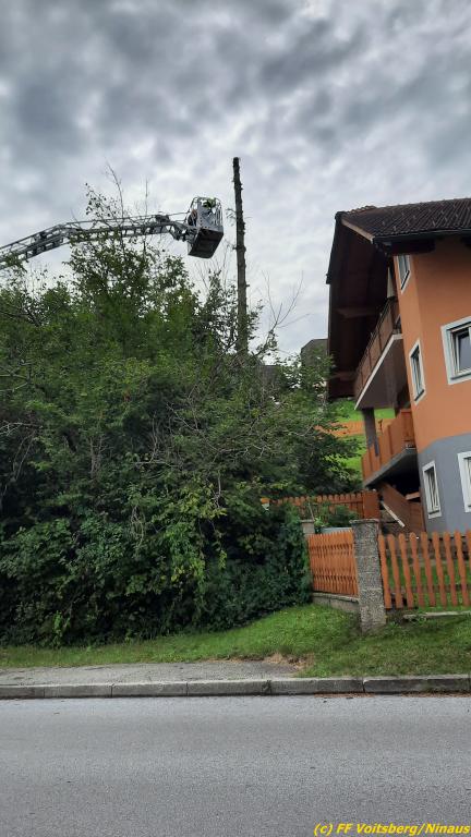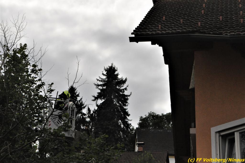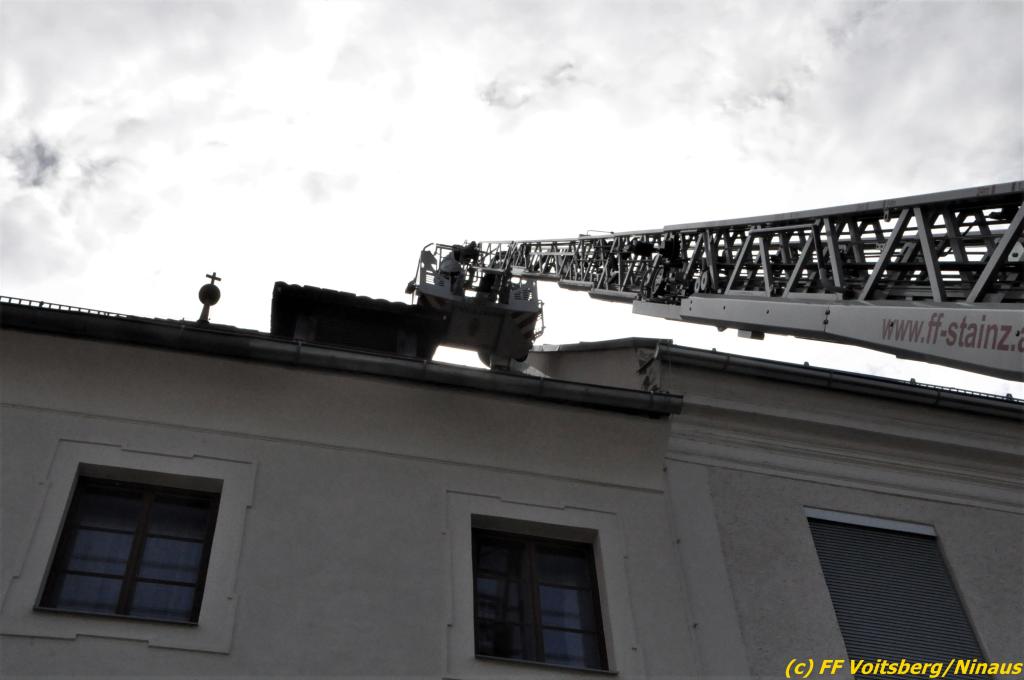 Für ein gelöstes Blech auf der Josefskirche und einem umsturzgefährdeten Baum Am Dechantriegel wurde die Drehleiter Stainz über die LLZ Steiermark angefordert, da die DL Köflach bei vielen Einsätzen im Bezirk ausgelastet war.