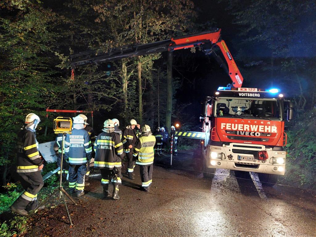 Die FF Voitsberg wurde am Freitag, 30. September 2022 um 20:18 Uhr über Anforderung der einsatzleitenden Feuerwehr St. Martin a. W. zu einer Fahrzeugbergung alarmiert.