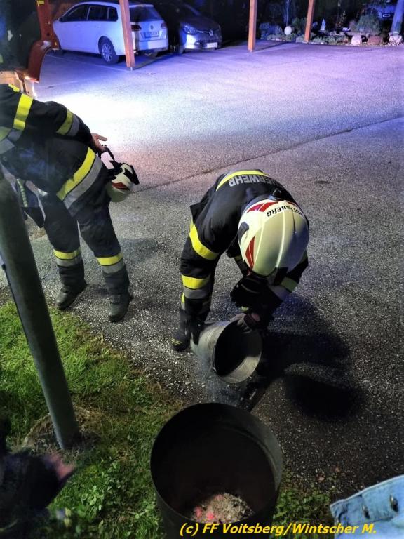 Glutnester in Kastanienofen im Freien haben noch geraucht - Löschen des Kleinbrandes - kein Schaden