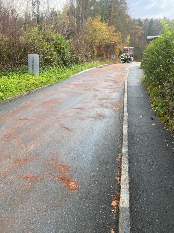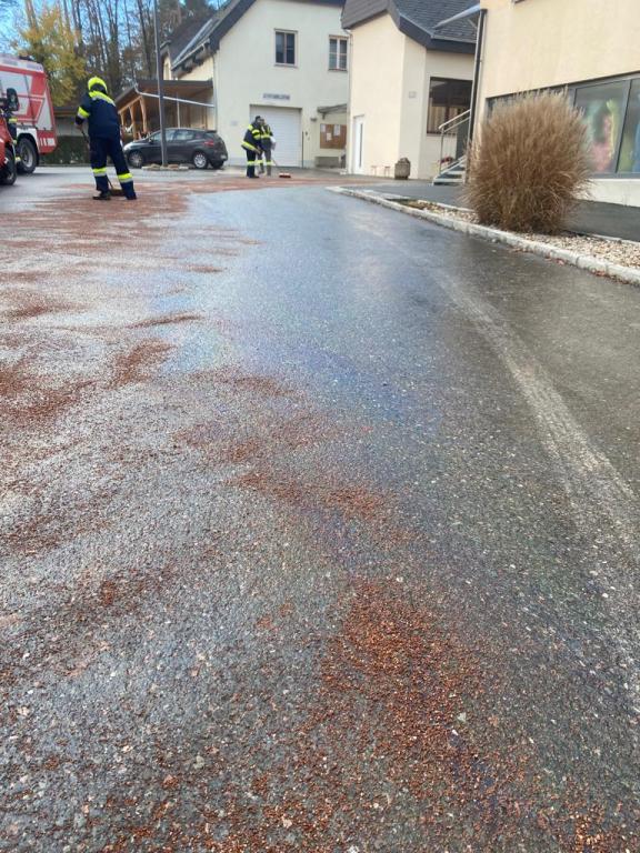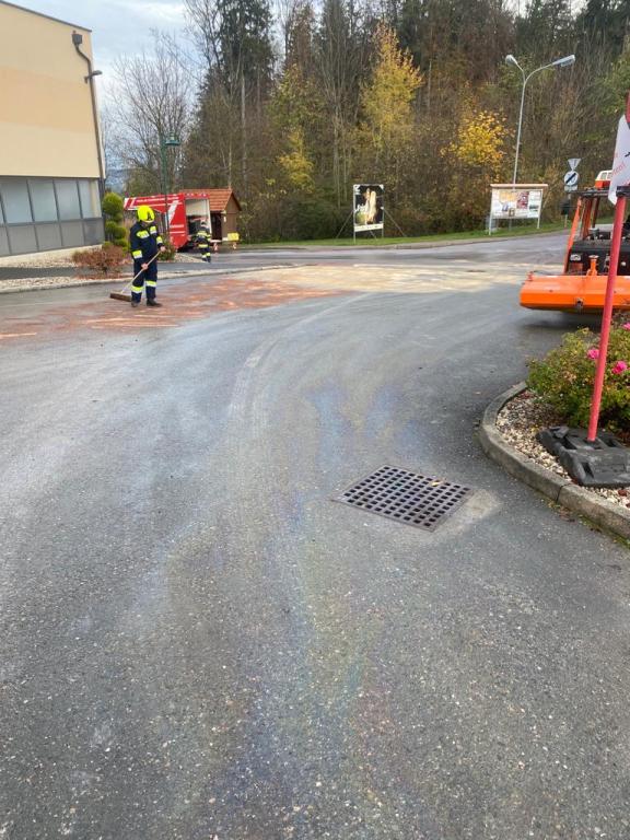 Ein Lkw verlor aufgrund eines Defektes am Fahrzeug Öl und verunreinigte die Straße. Das Öl wurde von den Feuerwehren Stallhofen und Voitsberg mit Bindemittel gebunden und fachgerecht entsorgt.