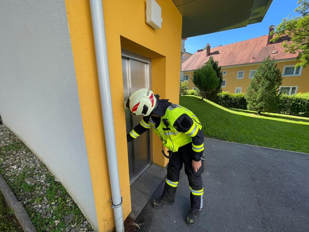 Bei Eintreffen wurde nach Erkundung der Lift auf die Basisstation gebracht und geöffnet - keine Person im Lift vorgefunden
