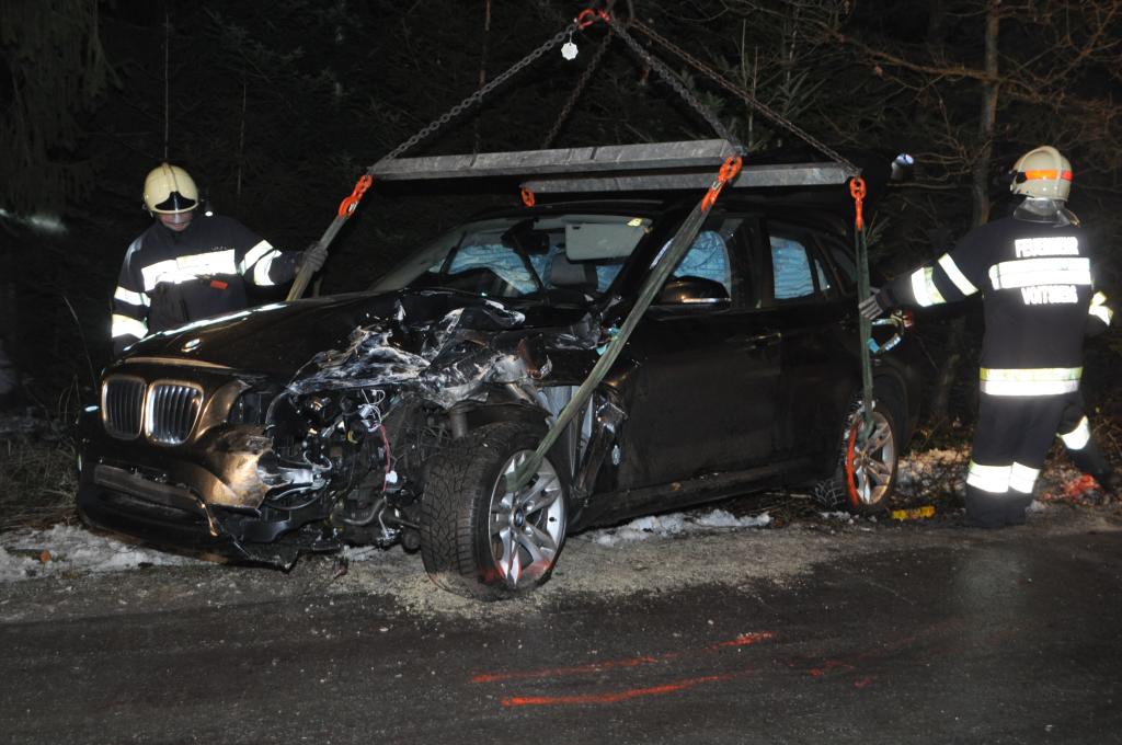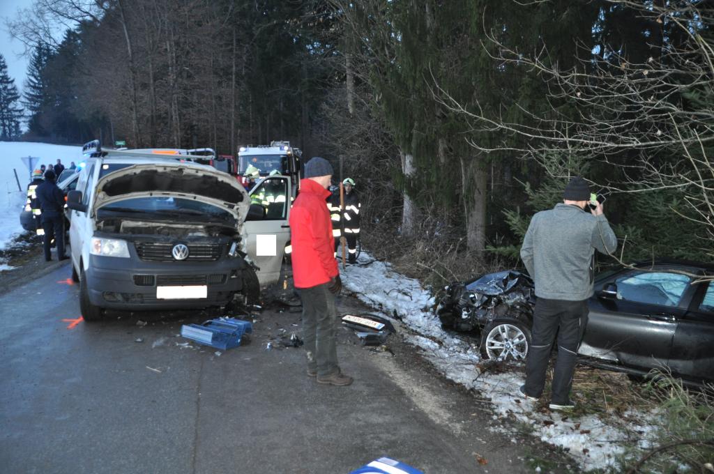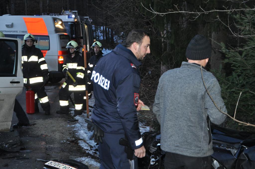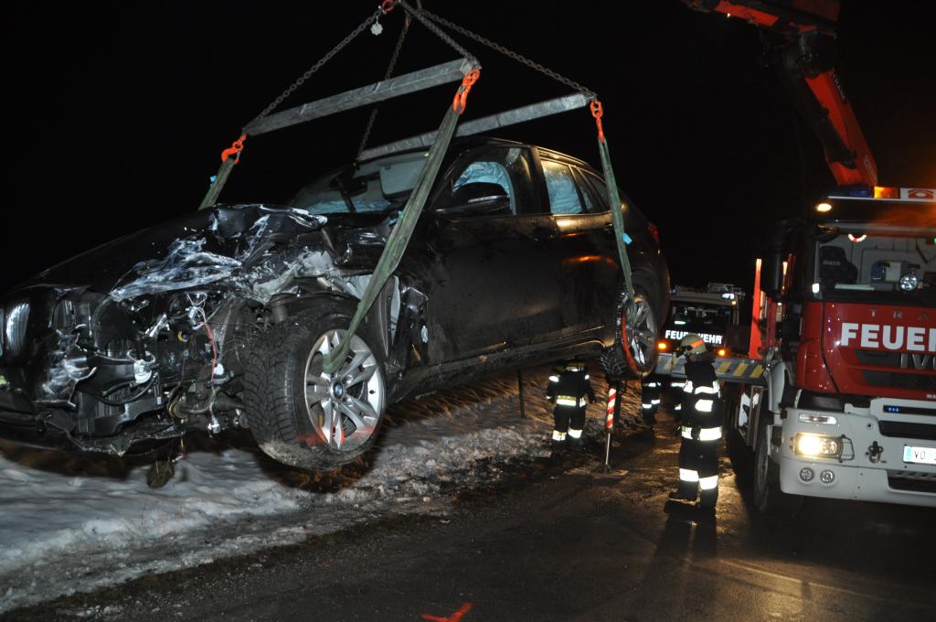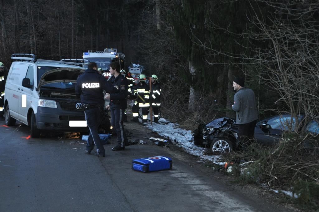 VOITSBERG, am 03.01.2015 Nach einem Frontalzusammenstoß eines Transporters mit einem PKW konnte sich eine im PKW befindliche, unbestimmten Grades verletzte Person nicht aus dem Fahrzeug befreien. Sie wurde in Zusammenarbeit zwischen der FF Voitsberg und dem Roten Kreuz Voitsberg aus dem Wagen gerettet, erstversorgt und in das LKH Voitsberg eingeliefert. Der Lenker des Kleintransporters konnte sich selbst aus dem Fahrzeug befreien und flüchtete. Die Fahrzeuge wurden mittels WLF-Kran von der Unfallstelle gebracht und die herumliegenden Wrackteile geborgen und entsorgt. Die Polizei Voitsberg führte die Erhebungen durch.