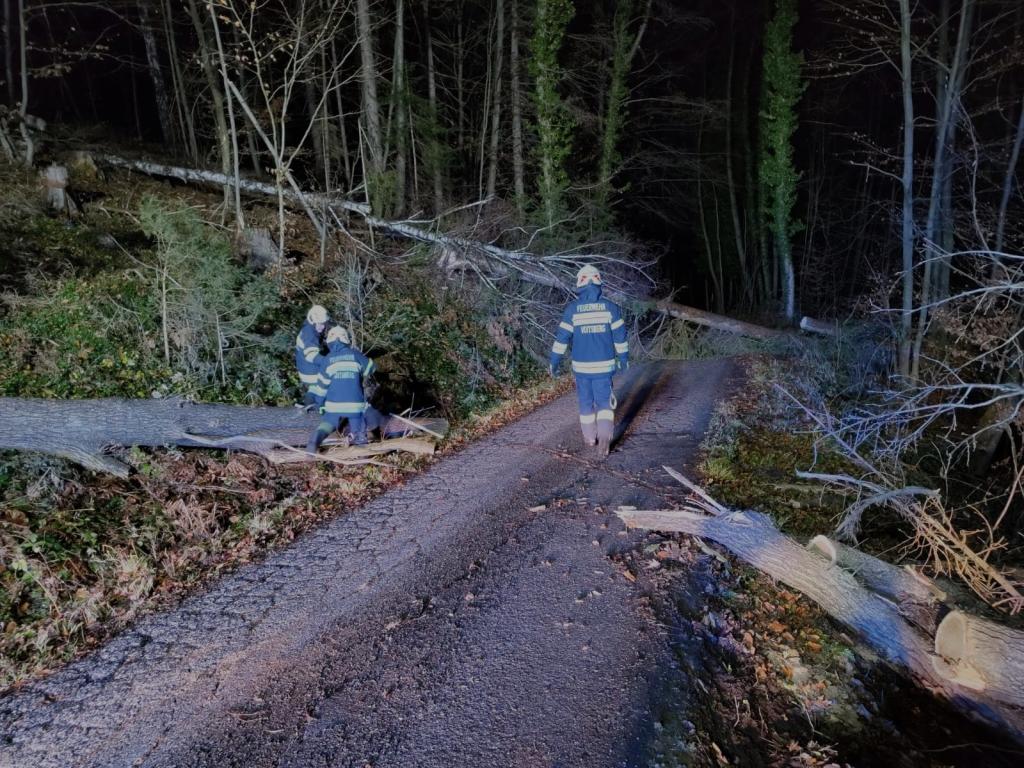 Umgestürzte Bäume blockierten Gemeindestraße