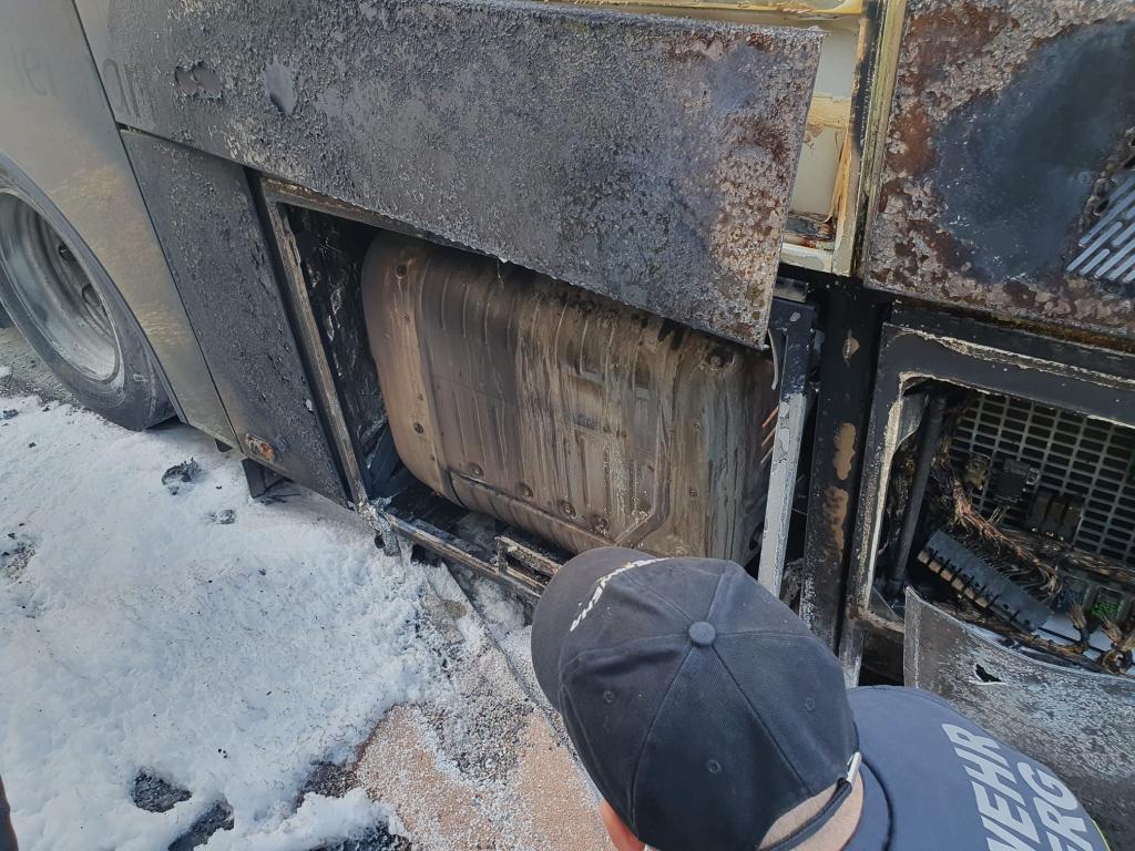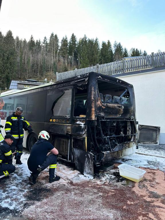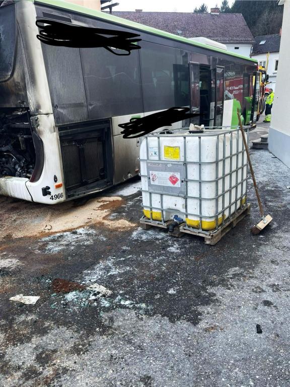 VOITSBERG, am 05.02.2024 Am 05.02.2024 geriet in Kainach kurz nach Mittag ein Linienbus aus ungeklärter Ursache in Brand. Das Feuer konnte von den Feuerwehren Afling und Kainach rasch gelöscht werden. Aufgrund der ausgelaufenen Betriebsmittel wurde um 14:05 Uhr auch die FF Voitsberg mit dem Ölschadensfahrzeug alarmiert.