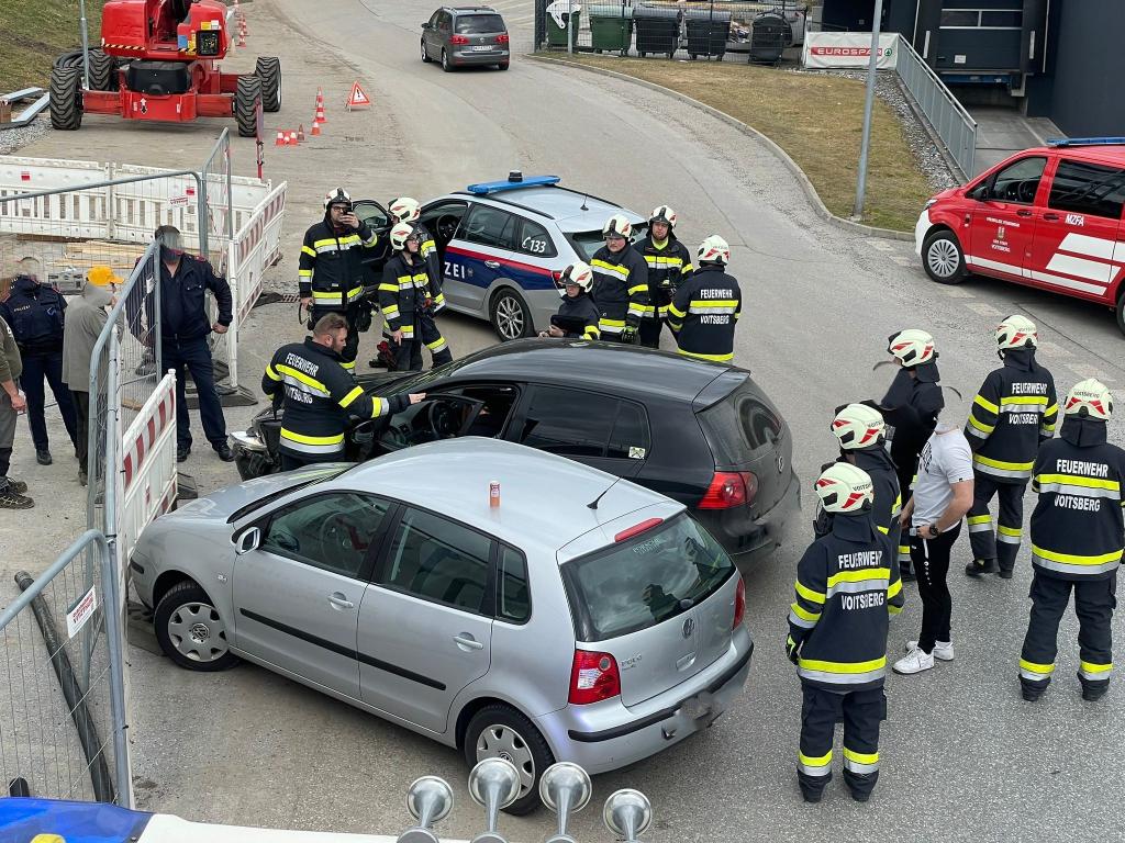 VOITSBERG, am 17.02.2024 Nach einem Zusammenstoß zweier PKW wurde die Straße von herumliegenden Wrackteilen frei gemacht. Beide Fahrzeuge setzten Fahrt auf eigener Achse fort.