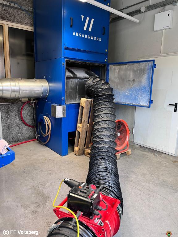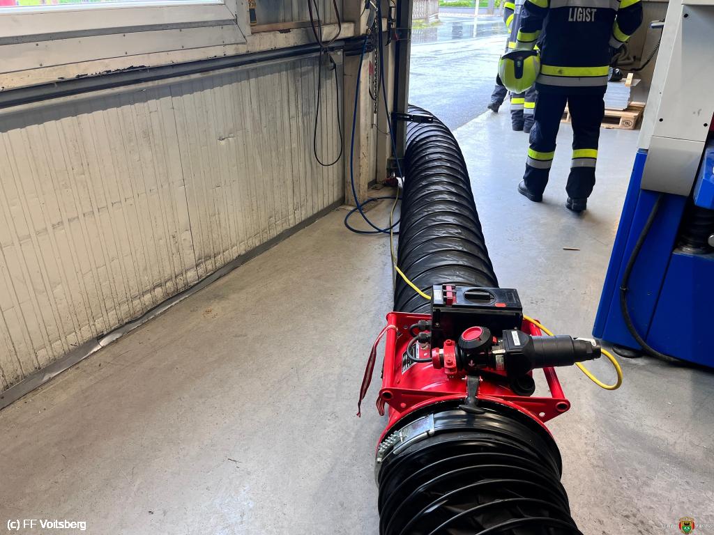 In weiterer Folge wurde mit einem explosionsgeschütztem Absauggerät der Feuerwehr Ligist das Luftwasserstoffgemisch abgesaugt.