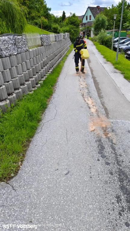 Diese Schmiermittel wurden mit Ölbindemittel gebunden, mit einer feuerwehreigenen Kehrmaschine aufgesaugt und fachmännisch entsorgt.