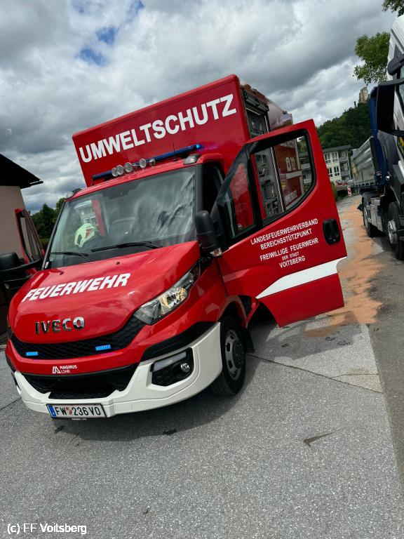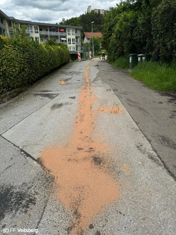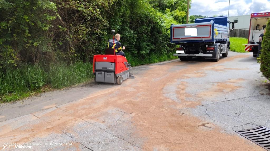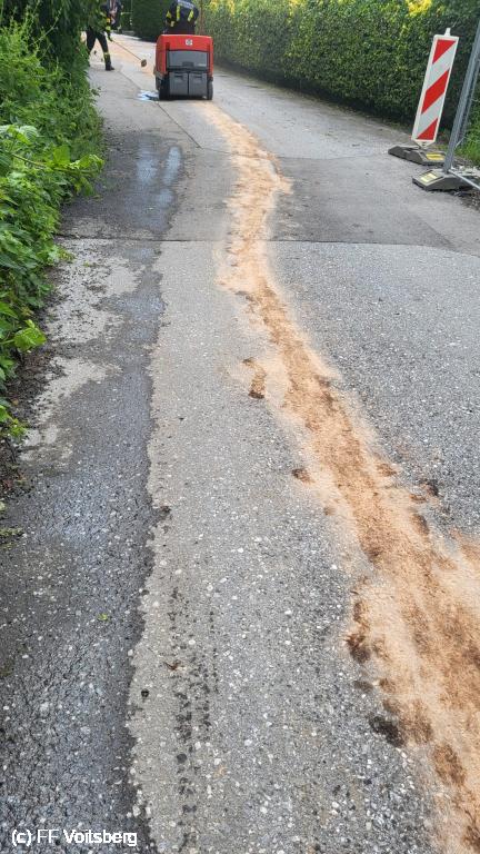 Aufgrund eines technischen Gebrechens an einem LKW verlor dieser Hydrauliköl und verunreinigte die Gemeindestraße auf einer Länge von ca. 150m.