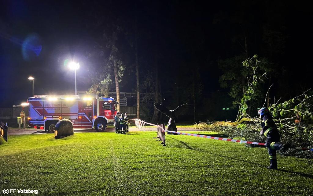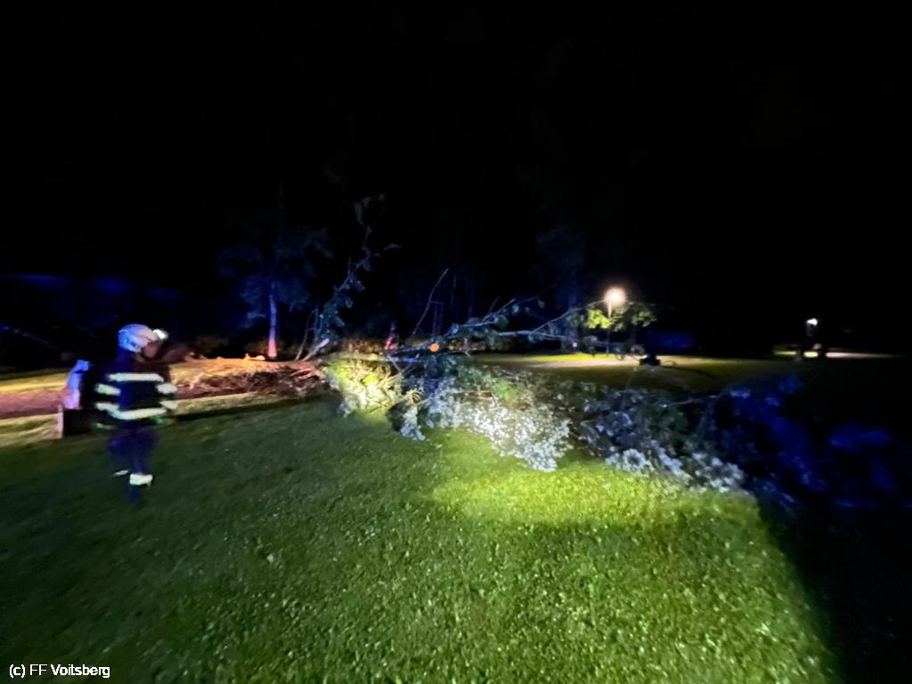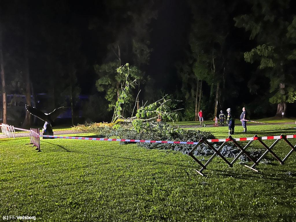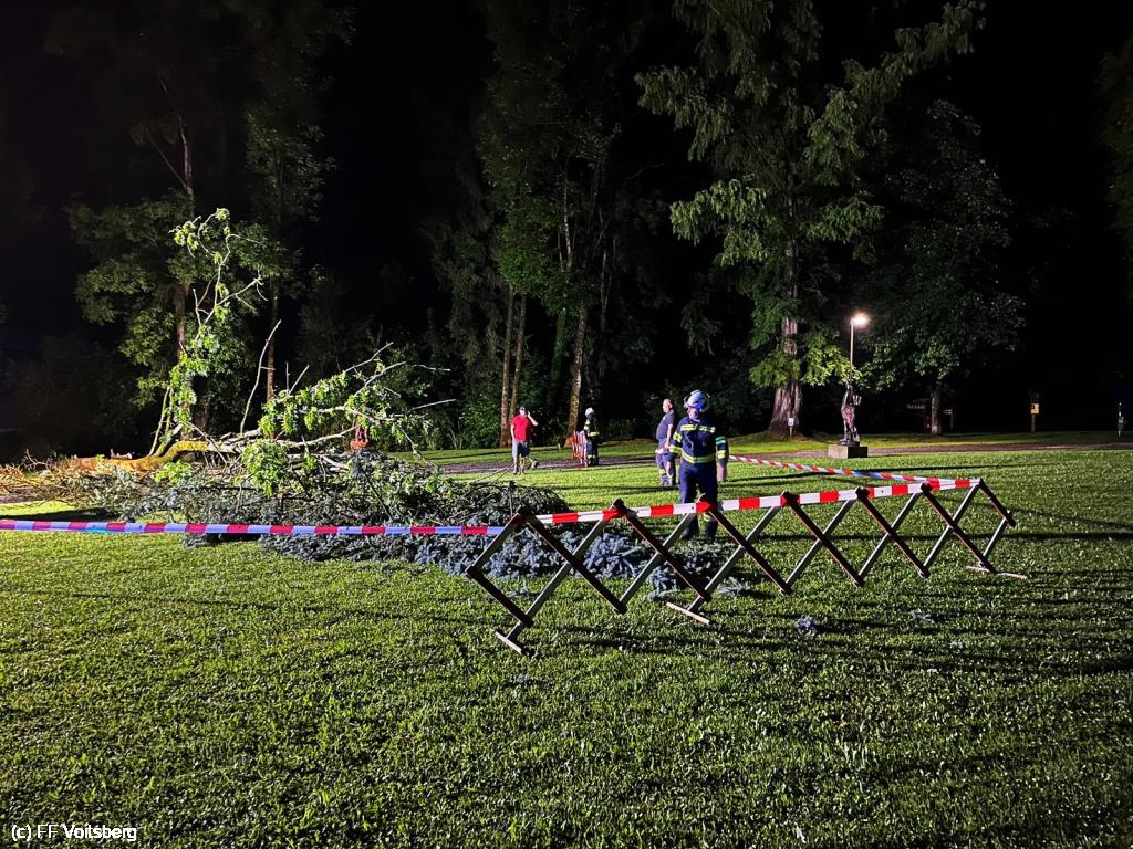 VOITSBERG, am 22.06.2024 Nach einem Gewitter mit Blitzen und Sturm stürzten zwei Bäume im Naherholungsgebiet Schlosspark um. Sicherungsarbeiten durchgeführt und den Bau- und Wirtschaftshof verständigt.