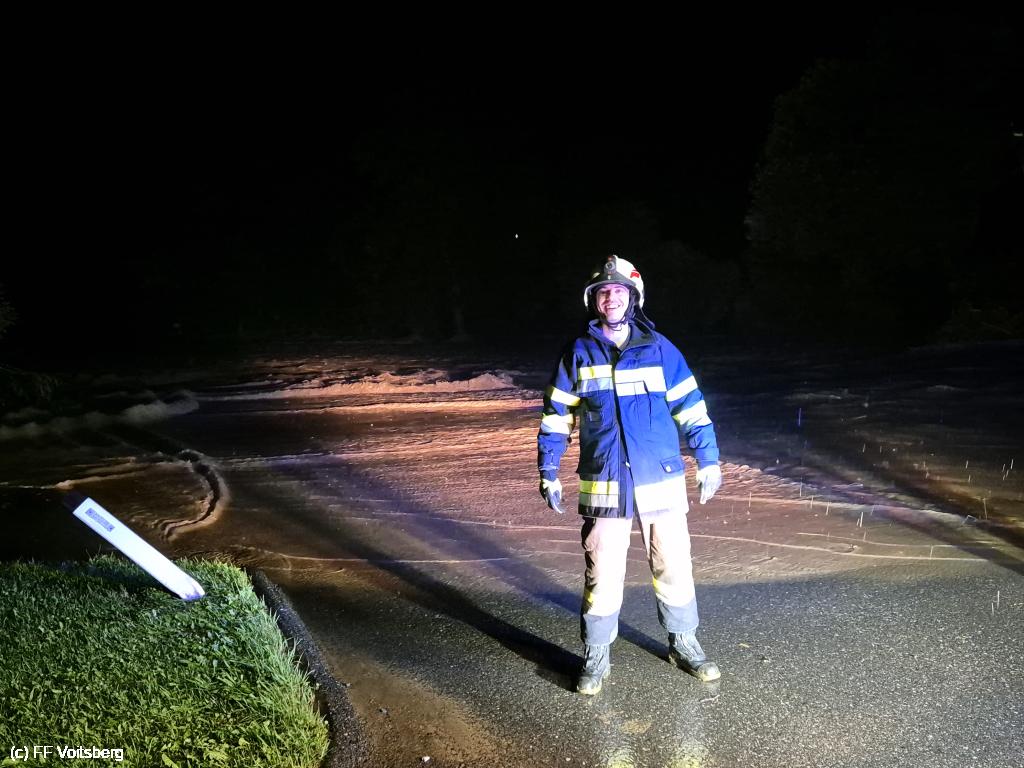 Einige Bewohner wurden von uns angewiesen aus Sicherheitsgründen in ihren Häusern zu bleiben. In Kleinwöllmiß wurde ein PKW von den Wassermassen mitgerissen. Zusammen mit der MRAS Einheit der FF Bärnbach kämpften sich die Einsatzkräfte zu Fuß durch die Fluten und durchsuchten den PKW. Glücklicherweise befand sich kein Lenker in diesem Fahrzeug.