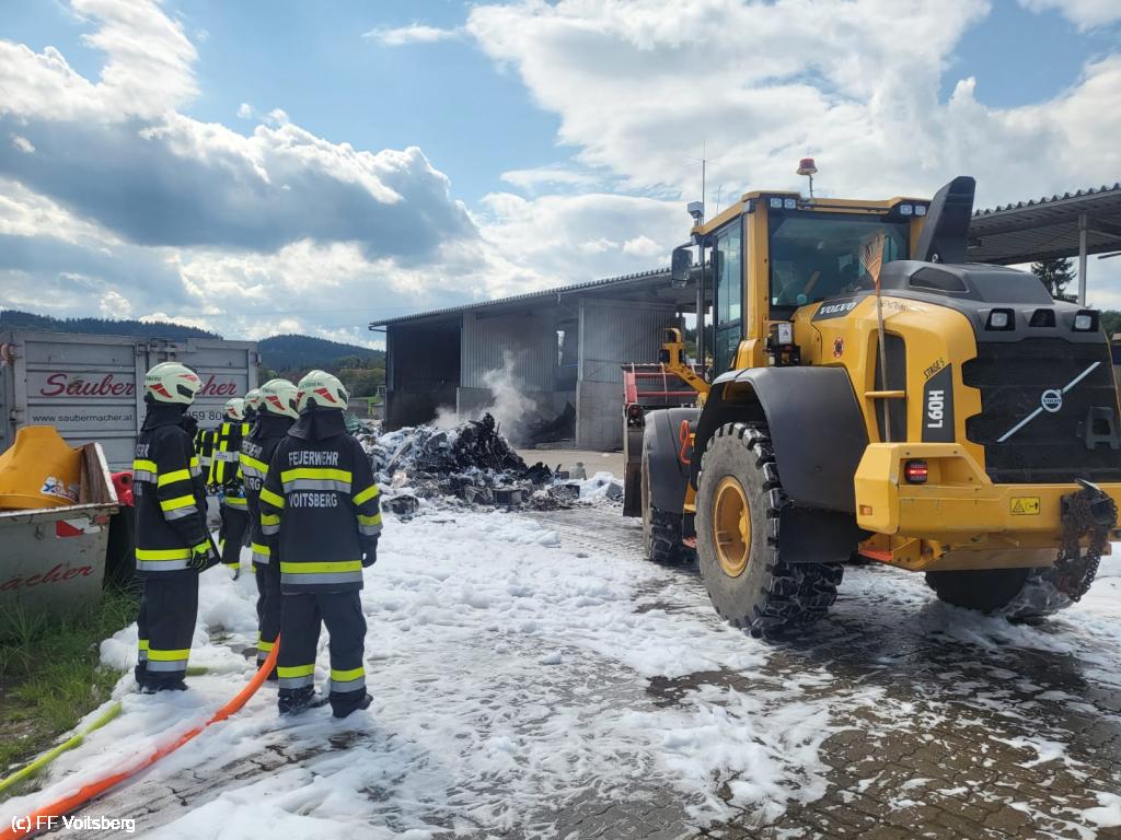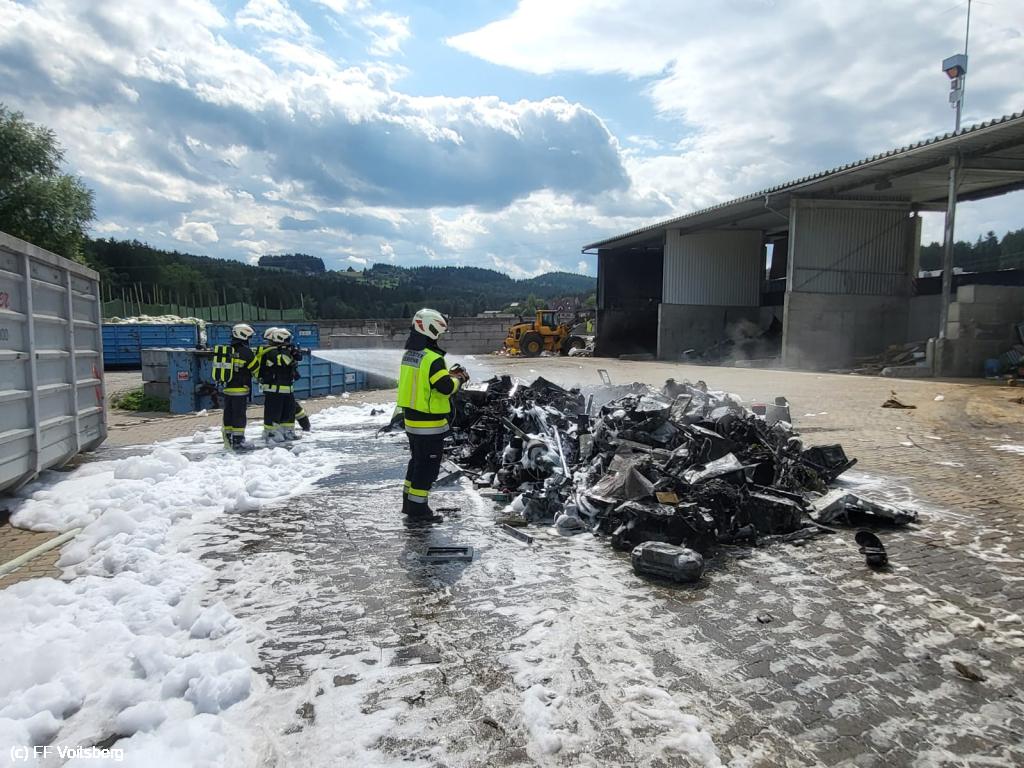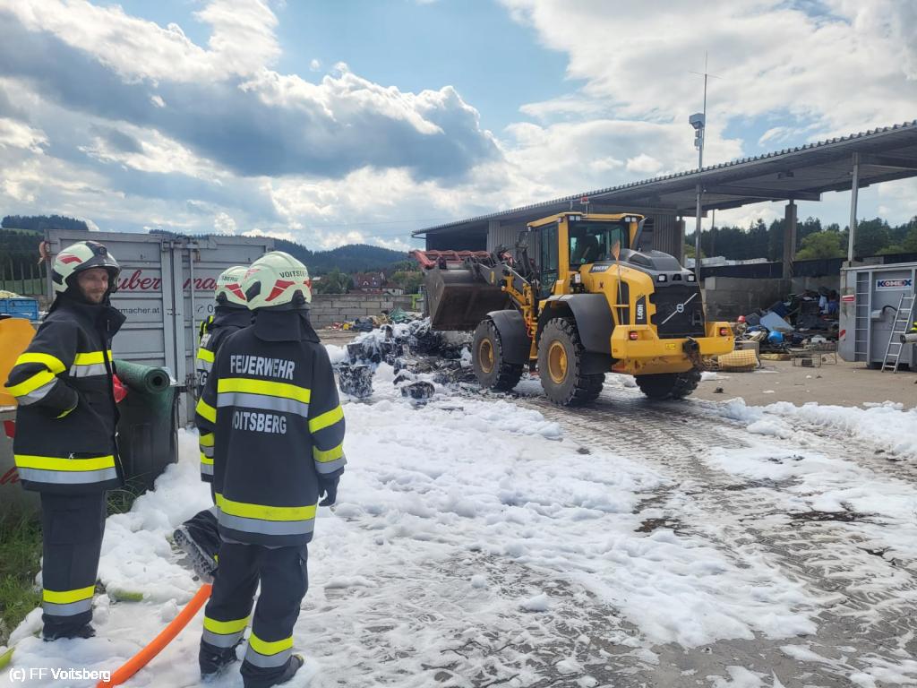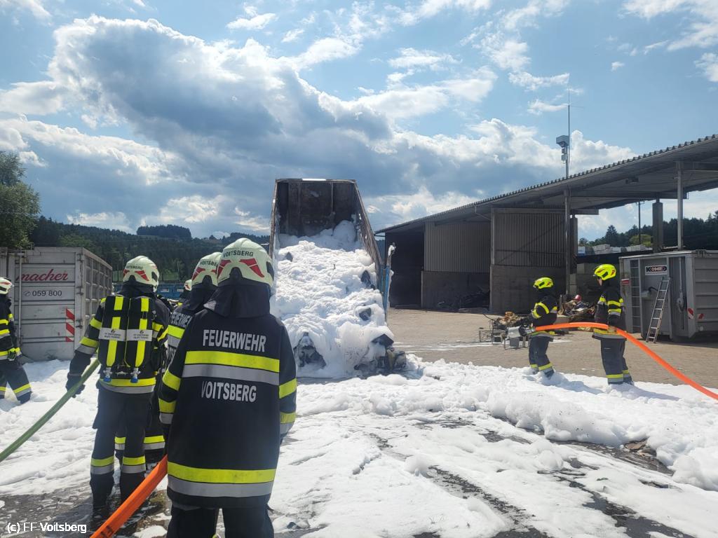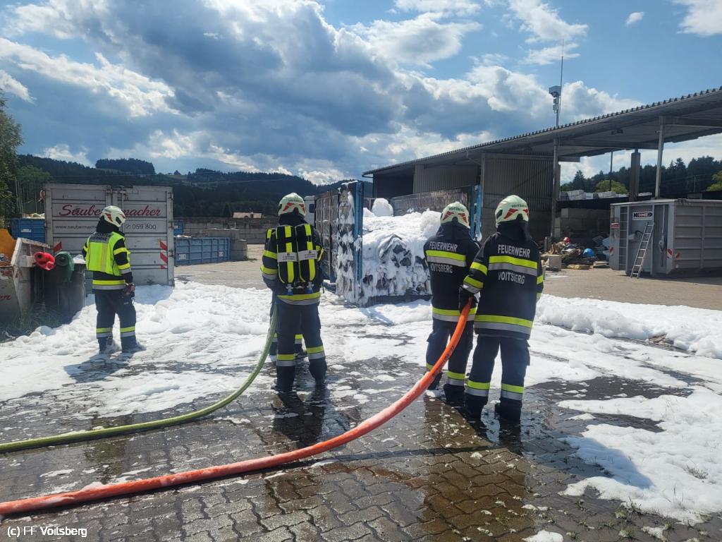 Ein mit Elektroschrott beladener Groß-Container geriet aus ungeklärter Ursache in den frühen Nachmittagsstunden des 3. August 2024 auf einem Platz eines Voitsberger Abfallbetriebes in Brand und griff auf den gesamten Container über.