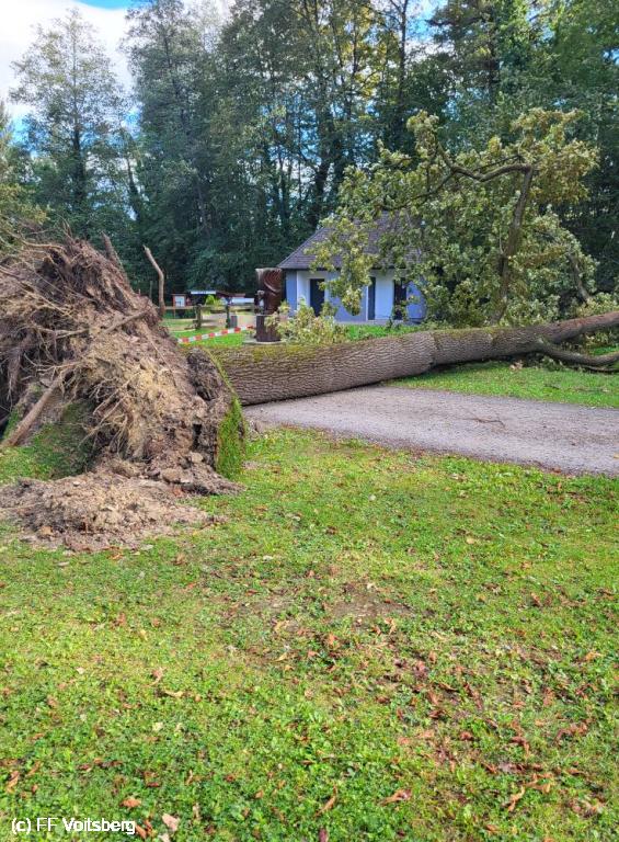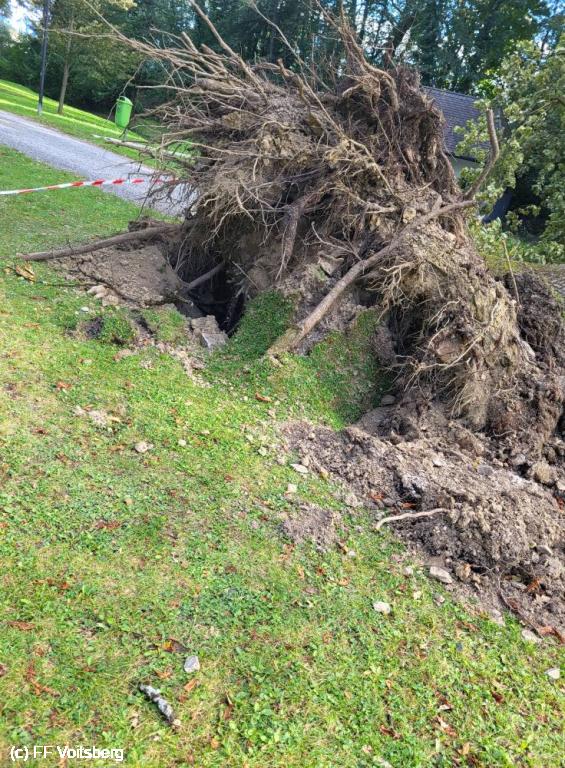 VOITSBERG, am 15.09.2024 Den Gehweg an einem umgestürzten Baum im Naherholungsgebiet Schlosspark Voitsberg abgesichert und den städtischen Bauhof verständigt.