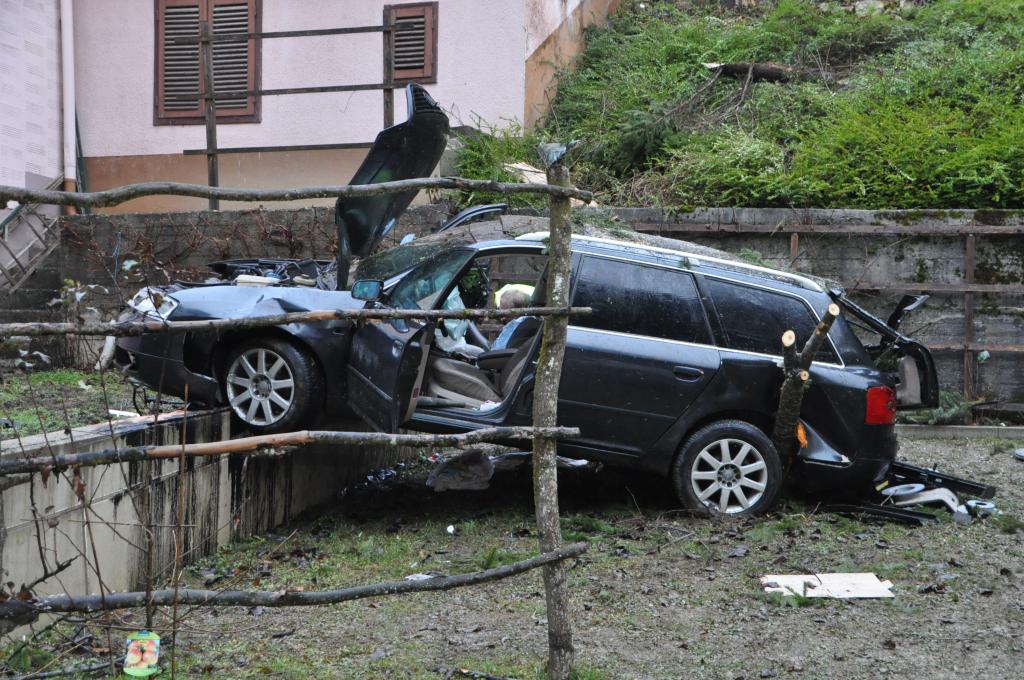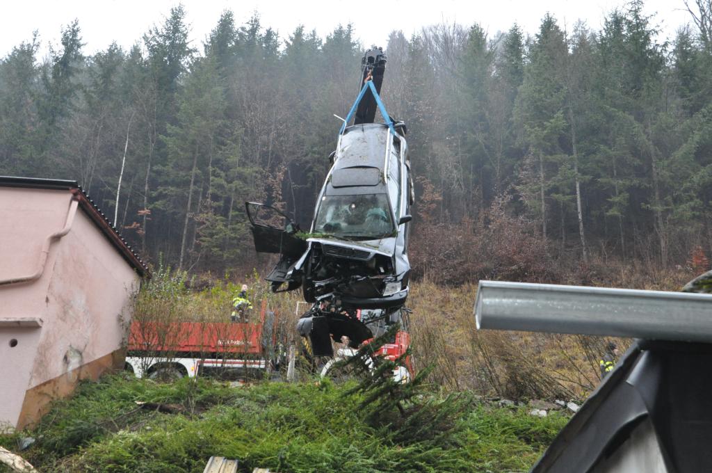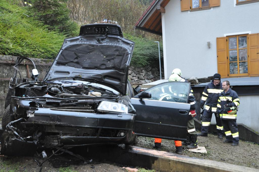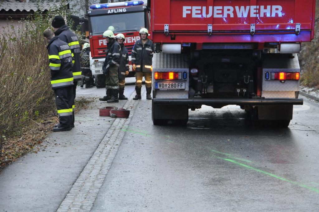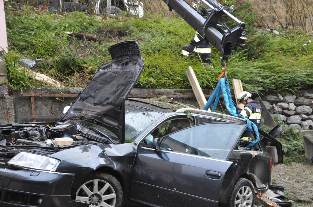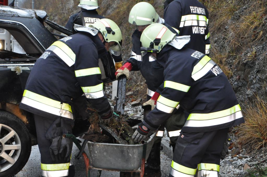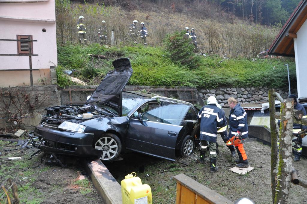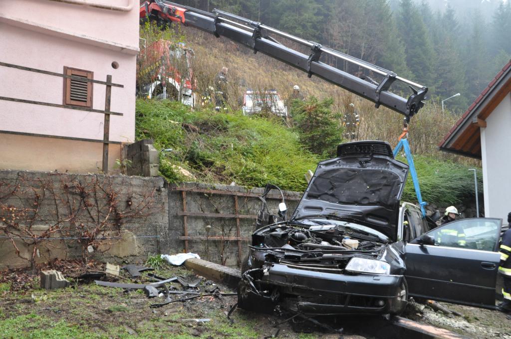 VOITSBERG, am 27.12.2013 Ein PKW-Lenker geriet mit seinem PKW auf der Gemeindestraße im Freisinggraben rechts gegen eine Bordsteinkante, verriß sein Fahrzeug nach links und stürzte sich überschlagend über eine 5 Meter hohe Böschung. Das schwerst beschädigte Fahrzeug kam am Dach zu liegen. Beide Insassen wurden aus dem PKW geschleudert. Die mitfahrende Person wurde unter dem Fahrzeug eingeklemmt und von Passanten geborgen. Der anwesende Arzt konnte nur mehr den Tod des Beifahrers feststellen. Der Fahrer wurde mit Verletzungen unbestimmten Grades vom Roten Kreuz Voitsberg ins LKH Voitsberg eingeliefert. Die zuständige Ortsfeuerwehr Afling alarmierte zwecks Bergung des Fahrzeuges über die LLZ das WLF Voitsberg. Die darauffolgende Bergung wurde in Zusammenarbeit mit der FF Afling durchgeführt. Das Fahrzeug wurde zum Rüsthaus Voitsberg überstellt.