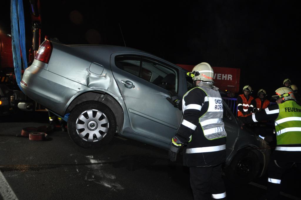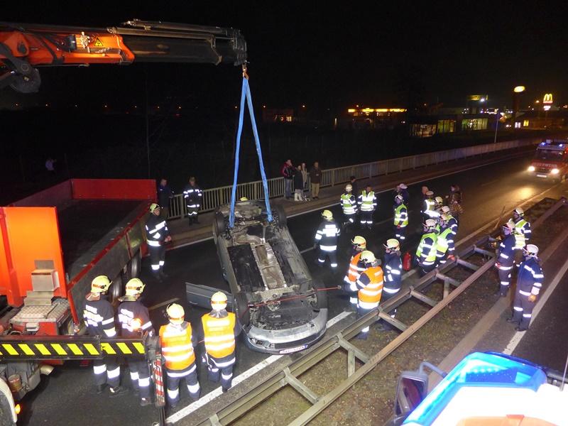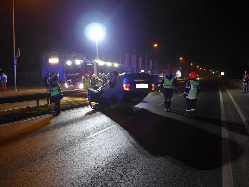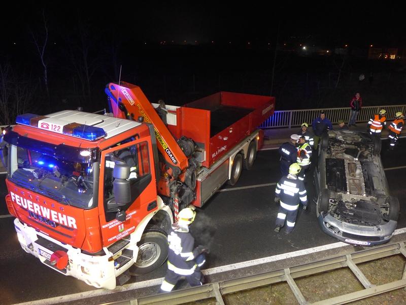 VOITSBERG, am 21.12.2013 Ein PKW prallte gegen eine Mittelleitschiene, überschlug sich und kam mit den Rädern nach oben auf der zweispurigen Bundesstraße zu liegen. Der Lenker des PKW konnte sich aus eigener Kraft aus dem Fahrzeug befreien und blieb wie durch ein Wunder unverletzt. Die alarmierte Feuerwehr Rosental sicherte die Unfallstelle ab und baute einen doppelten Brandschutz auf. Zwecks Bergung des Fahrzeuges wurde von der Einsatzleitung das WLF Voitsberg über die LLZ angefordert, welches das Fahrzeug barg und von der Gefahrenstelle abtransportierte. Das ebenfalls alarmierte Rote Kreuz brauchte nicht in Tätigkeit treten. Während der Aufräumungs- und Bergungsarbeiten wurde in Richtung Köflach seitens der Polizei eine Umleitung für ca. 30 Minuten errichtet.
