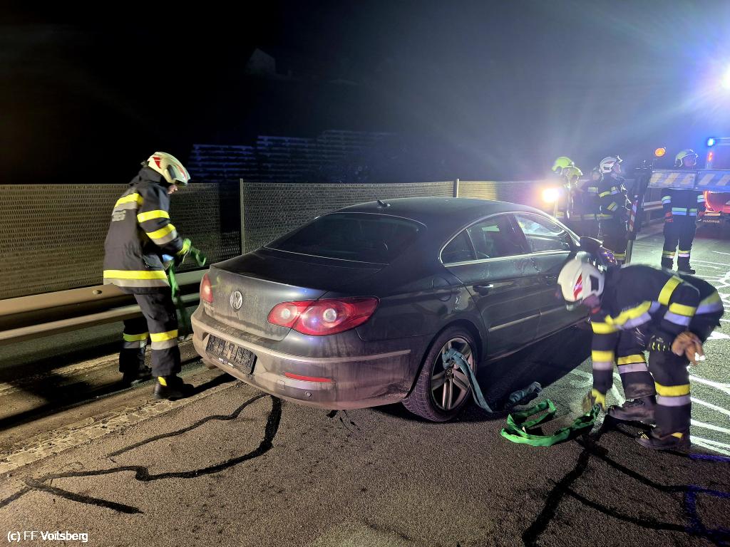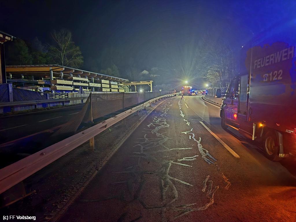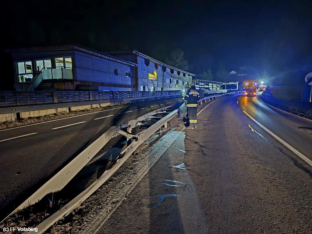 VOITSBERG, am 02.02.2025 Aus ungeklärter Ursache fuhr ein PKW Lenker in den Abendstunden des 02.02.2025 mit seinem Fahrzeug auf der B70 auf den Beginn einer Leitschiene auf und kam erst nach rund 100 Metern auf der Überholspur zum Stillstand.