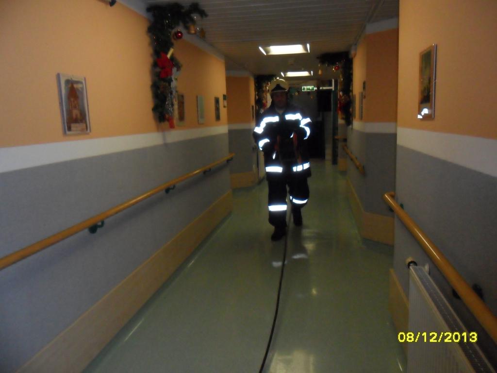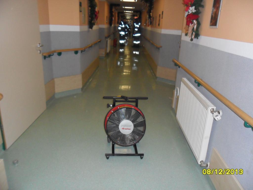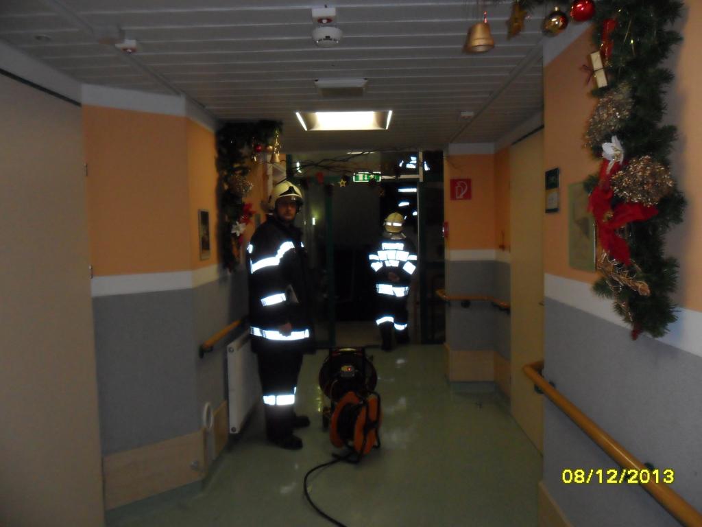VOITSBERG, am 08.12.2013 Aus unbekannten Gründen brach in einem bewohnten Zimmer im Erdgeschoß des Bezirksaltenheimes in Voitsberg ein Brand aus. Die Brandmeldeanlage meldete den Brand an Florian Steiermark, welche die FF Voitsberg alarmierte. Bei Eintreffen stellten die Einsatzkräfte fest, dass der Brand, welcher lokal im Zimmer ausbrach, bereits vom Pflegepersonal gelöscht wurde und sich keine Personen im Raum befanden. Die verrauchten Räumlichkeiten sowie der Gang wurden kontrolliert und unter Atemschutz mittels Druckbelüfter rauchfrei gemacht. Verletzt wurde niemand.