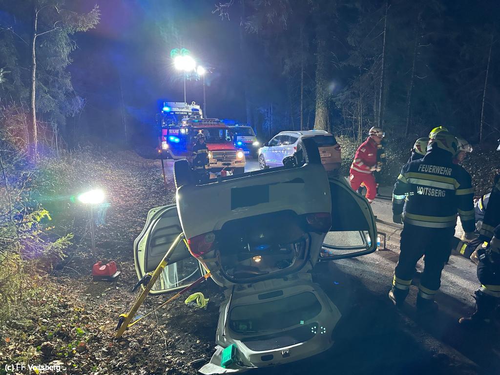 Eine PKW Lenkerin kam mit ihrem Fahrzeug aus ungeklärter Ursache von der Fahrbahn ab. Das Fahrzeug überschlug sich und blieb auf dem Dach liegen. Nachkommende Autofahrer wählten umgehend den Notruf.
