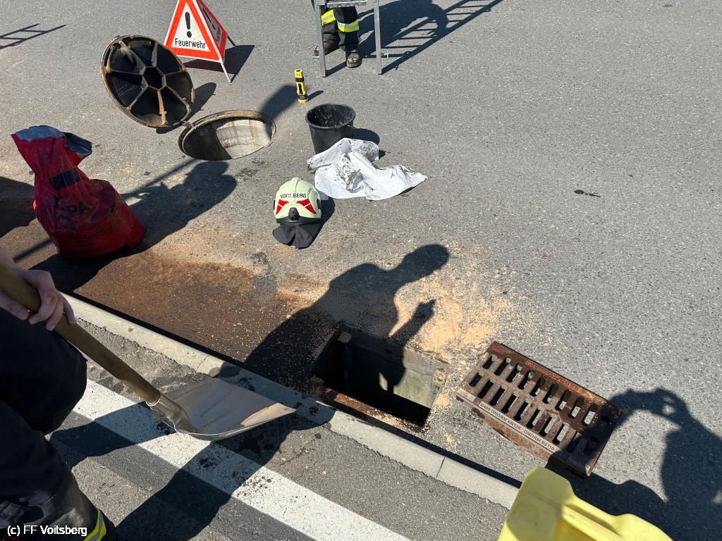 Da eine geringe Menge auch in einen Regenwasserschacht eintrat, war rasches Handeln seitens unserer Einsatzkräfte gefordert.