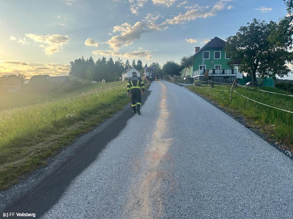 VOITSBERG, am 23.08.2025 Aufgrund eines technischen Defektes an einem Traktor wurde die Lobmingbergstraße auf einer Länge von rund 40 Metern verunreinigt.
