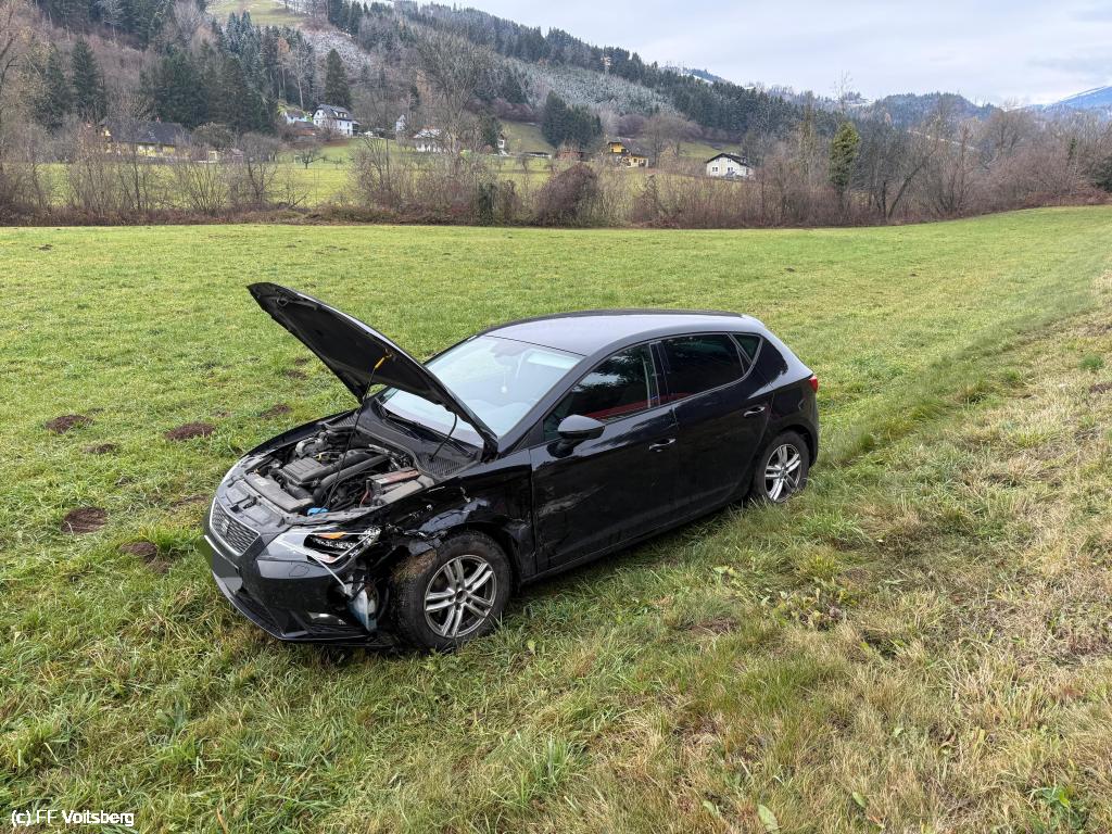 Das beschädigte Fahrzeug wurde mit der Seilwinde auf die Fahrbahn gezogen und einem Abschleppdienst übergeben.