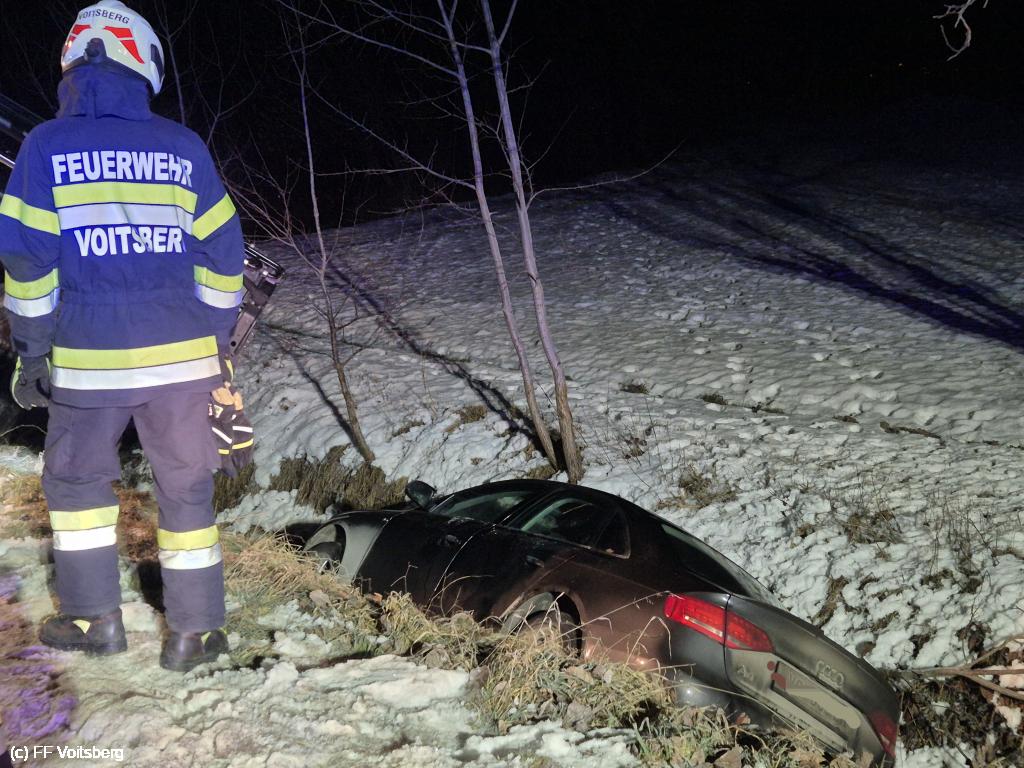 In den frühen Morgenstunden des Neujahrstages kam ein Lenker auf der L315 in Bernau von der Fahrbahn ab und landete mit seinem Fahrzeug im Straßengraben.