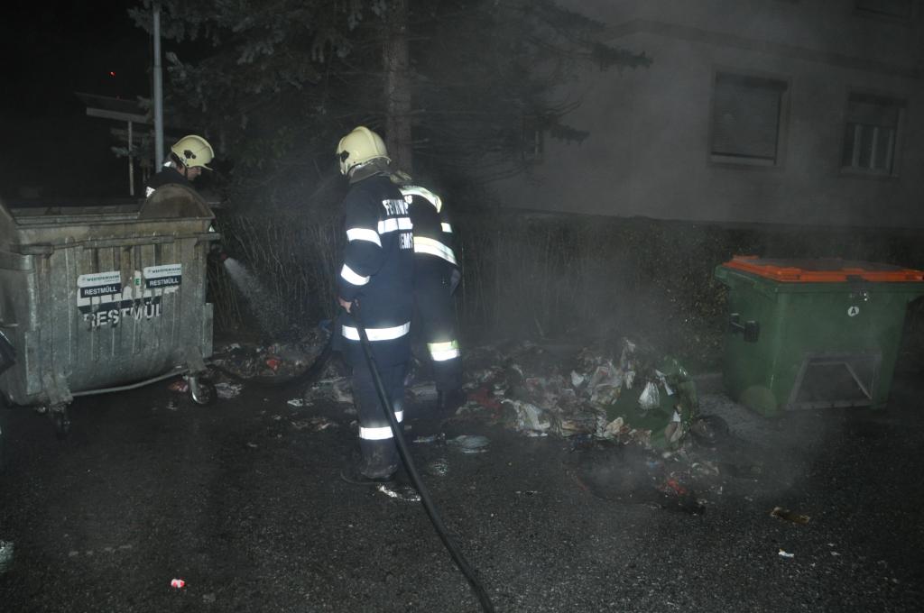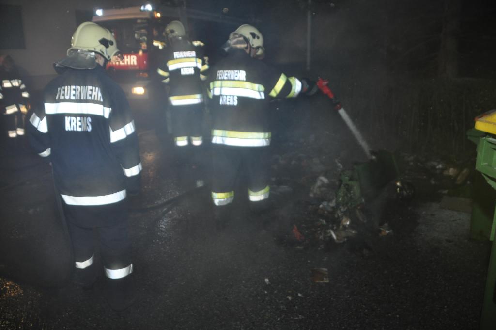 VOITSBERG, am 07.12.2014 Die Feuerwehren Krems und Voitsberg wurden laut Alarmplan zu einem Containerbrand in der Luthergasse alarmiert. Bei der Anfahrt bemerkte die Mannschaft des RLFA Voitsberg einen zweiten Containerbrand in der Mühlgasse und begab sich dorthin, während das TLF Krems und das TLFA/4000 Voitsberg in die Luthergasse fuhr. Beide Brände konnte rasch gelöscht werden. Der Sachschaden der verbrannten und angebrannten Container ist relativ hoch. Vermutlich wurden die Brände gelegt.