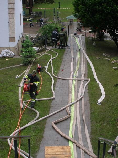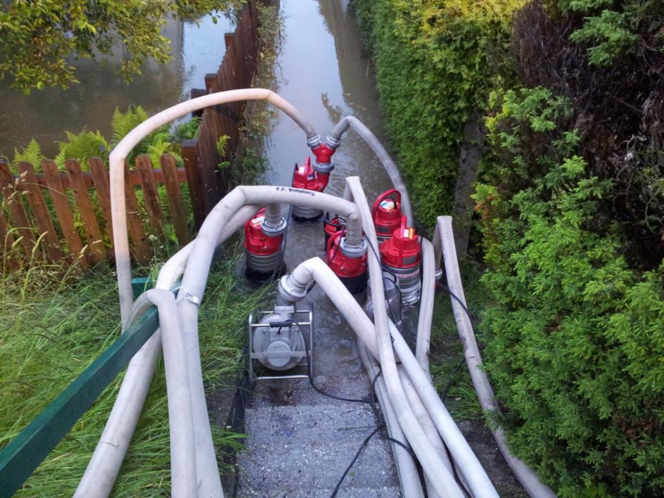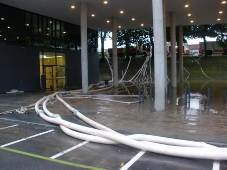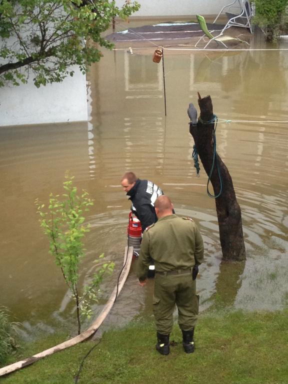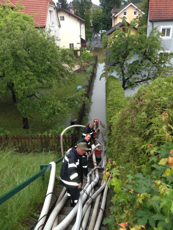 VOITSBERG, am 02.06.2013 Die FF Voitsberg wurde über das KHD-Kommando zum Pumpeinsatz nach Oberndorf im Bundesland Salzburg nach den Jahrhundertregenfällen angefordert. Kameraden begannen kurz nach der Alarmierung um ca. 19:15 Uhr mit den Verladearbeiten und so konnte kurz nach 20:00 Uhr die Fahrt zum Bereitstellungsraum Landesfeuerwehrschule Lebring angetreten werden. Nach der organisatorischen Aufnahme setzte sich der Zug des LFV Steiermark um 21:30 Uhr, bestehend aus 28 Kameraden mit 10 Fahrzeugen in Richtung Salzburg in Bewegung. Im zugeteilten Einsatzgebiet Oberndorf, welches bis zu 2 Meter unter Wasser stand, angekommen, begann unter Einsatz des bei der FF Voitsberg stationierten STROMA und der acht mitgeführten Hochleistungspumpen der Pumpeinsatz. Eine weitere Aufgabe der fünf von der FF Voitsberg im Einsatz befindlichen Kameraden war das Abpumpen der unter Wasser stehenden Keller und Häuser. Die Kameraden kehrten müde, aber glücklich, anderen Mitmenschen geholfen zu haben, um 19:45 Uhr ins Rüsthaus Voitsberg zurück.
