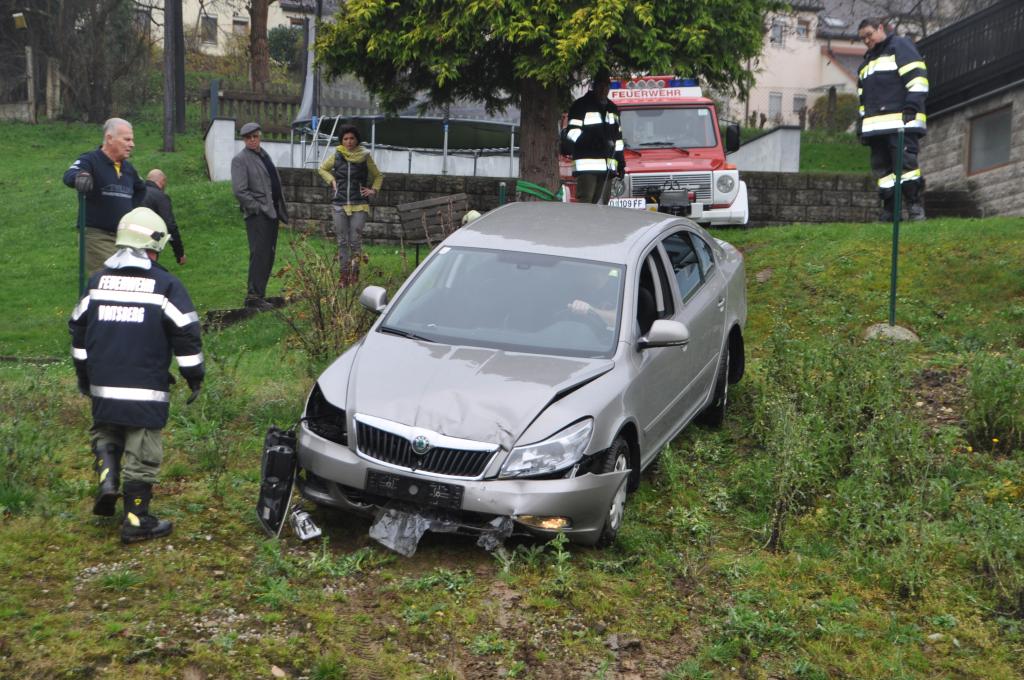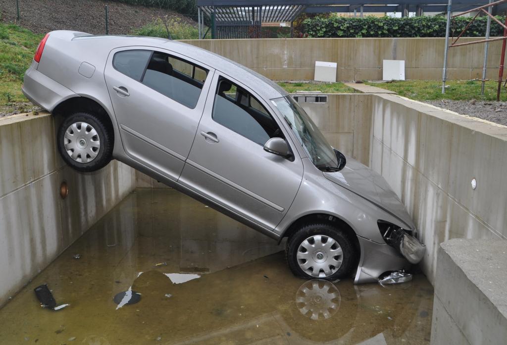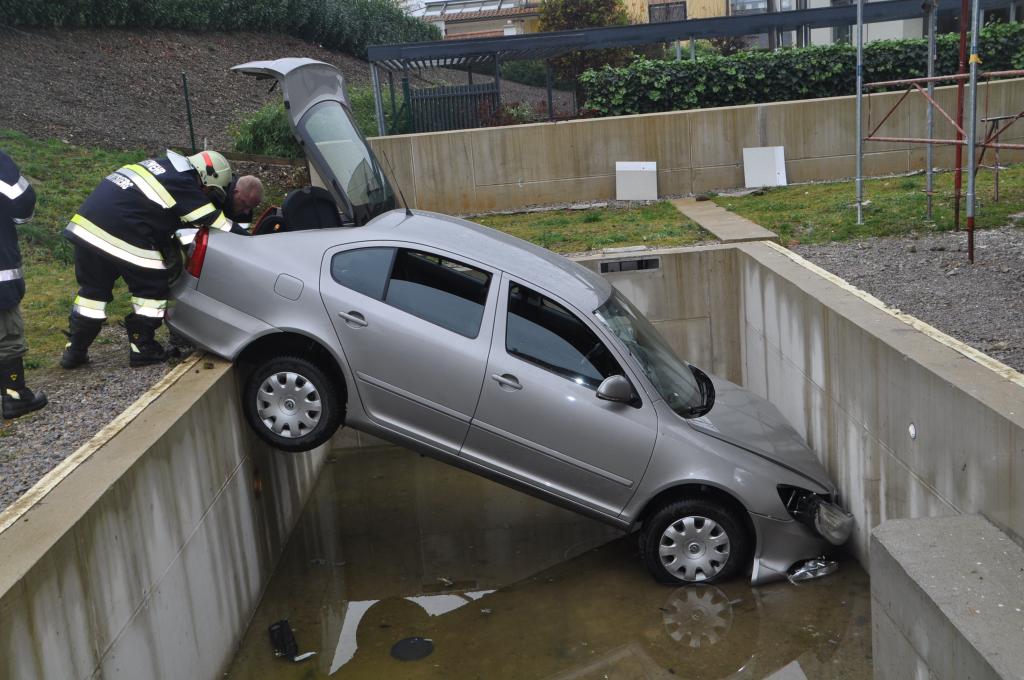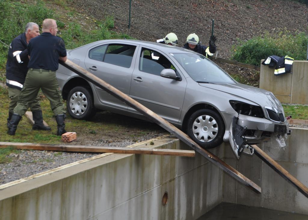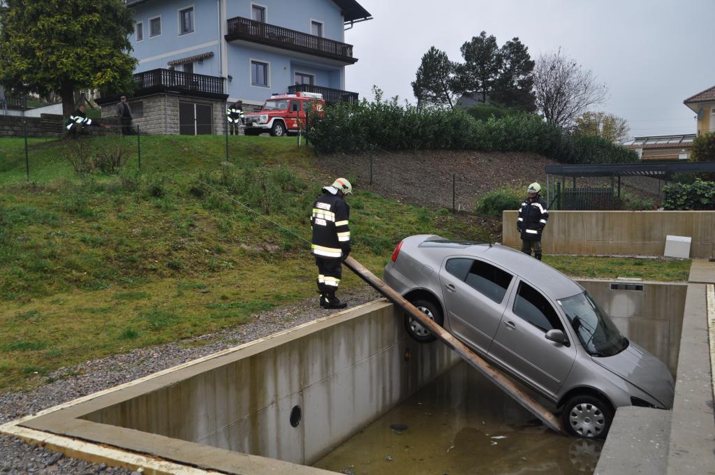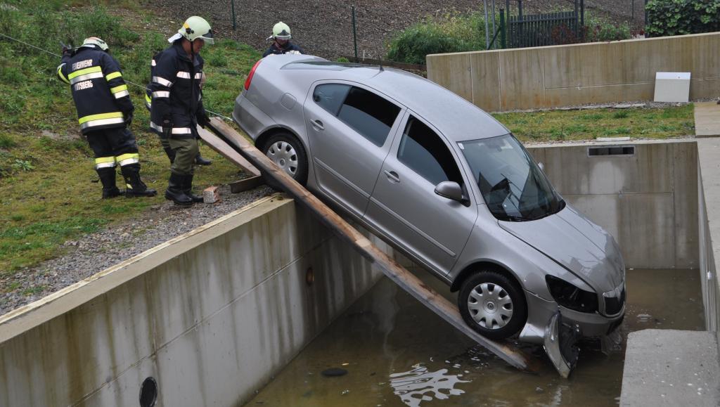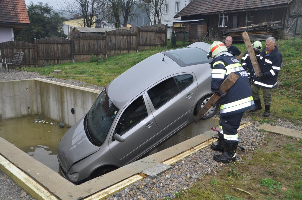 VOITSBERG, am 13.11.2014 Aus ungeklärter Ursache machte sich ein PKW selbständig und rollte über eine Wiese bergab und landete in einem leeren Swimmingpool. Verletzt wurde niemand. Die FF Voitsberg führte die Bergung mittels Umlenkrolle und Seilwinde mit dem KRFB durch. Das beschädigte Fahrzeug wurde auf einem Parkplatz abgestellt.