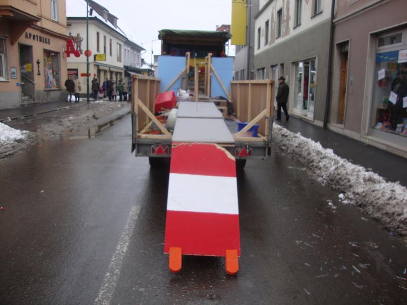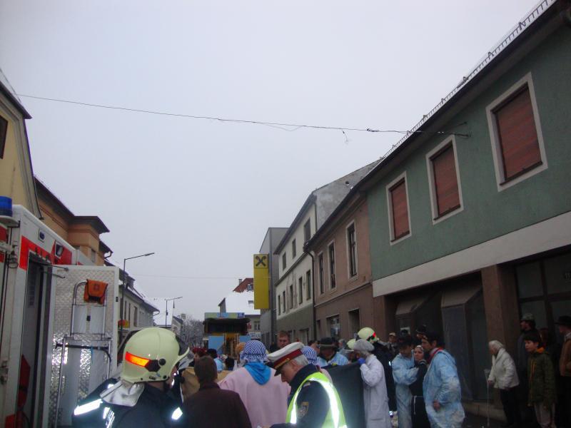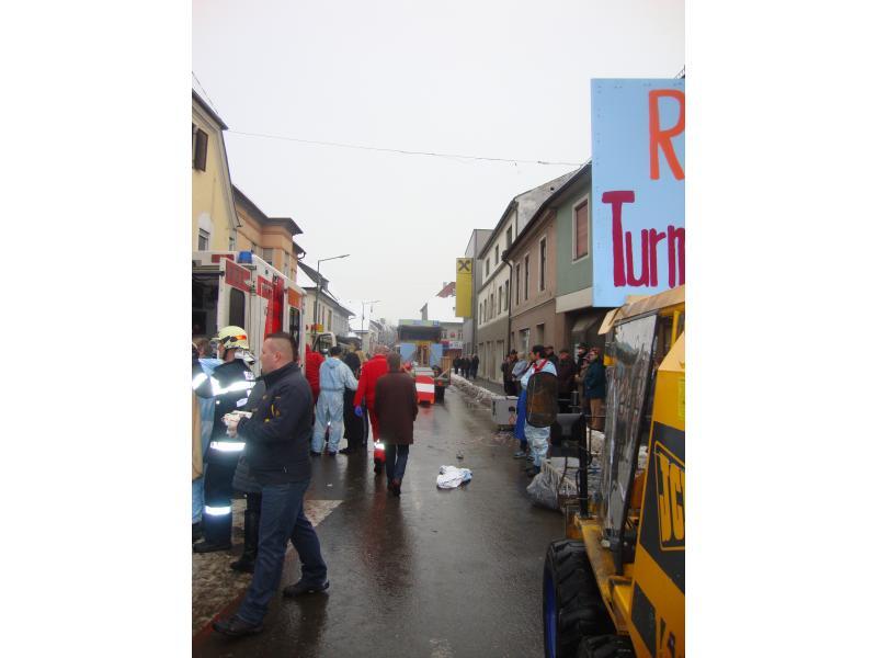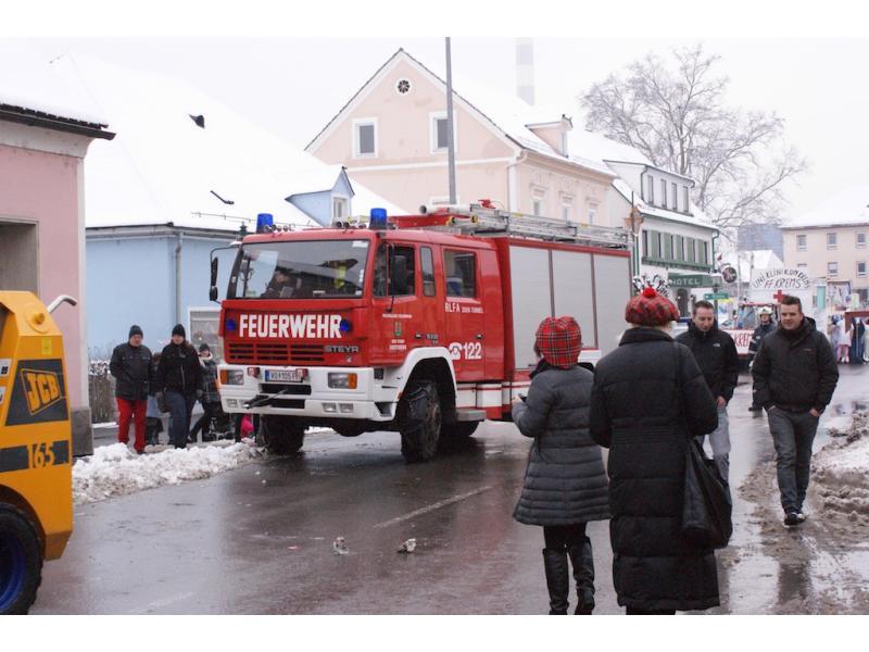 VOITSBERG, am 12.02.2013 Im Zuge eines Faschingsumzuges stürzte ein Holzgerüst auf einem Anhänger um und verletzte eine am Umzug beteiligte Person am Kopf. Am Einsatzort wurde Erste Hilfe bis zum Eintreffen des Notarztes geleistet, ein Sichtschutz aufgebaut und Assistenzleistung bei der Versorgung des Unfallopfers durch das Rote Kreuz geleistet.
